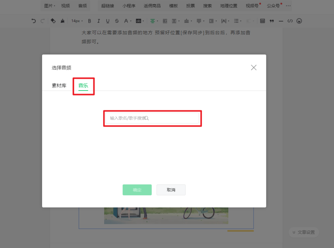 三兒在這里明確告訴大家,QQ音樂需要在微信公眾號后臺添加,編輯器中無法直接添加音頻。
