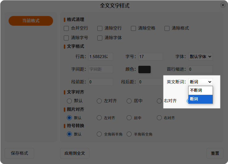 順便提一句,之前有朋友問的「英文斷詞」也能在這里設(shè)置。