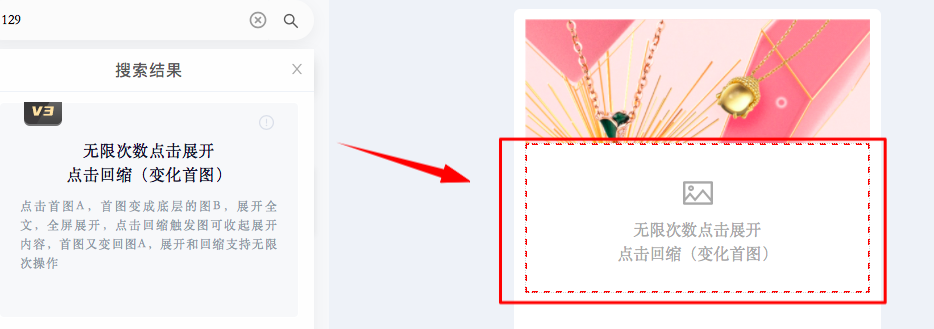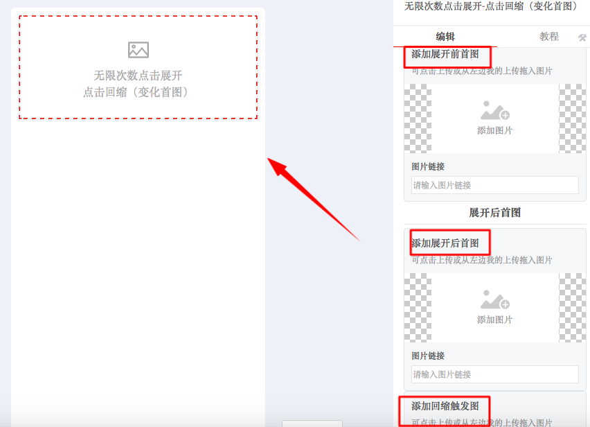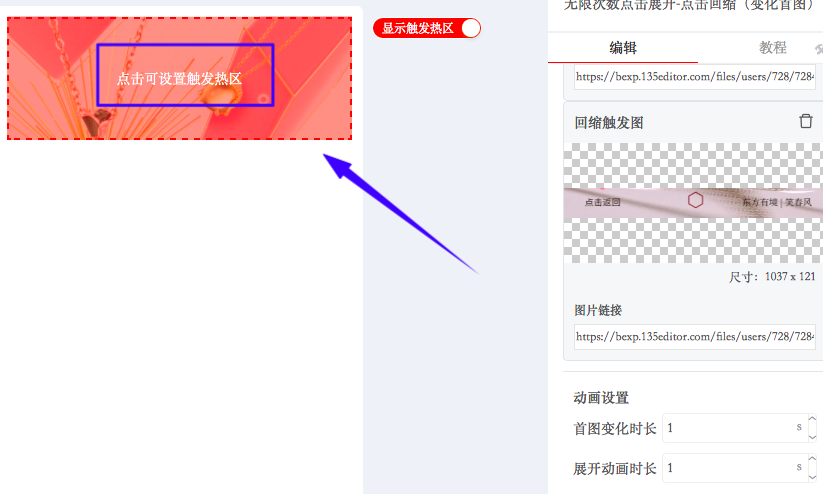 ③ 添加好展開前首圖、點(diǎn)擊變化后的圖片、回縮觸發(fā)圖后,再為首圖添加控制的熱區(qū)。
