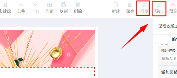 ⑥ 制做好之后,選擇右上角的【導(dǎo)出】【同步】即可同步到微信后臺(tái)。