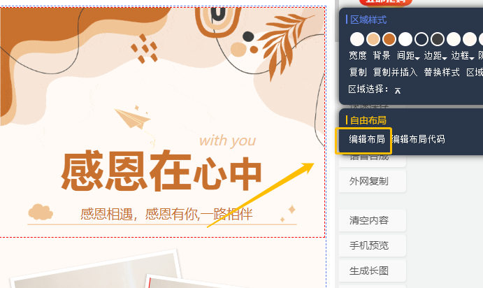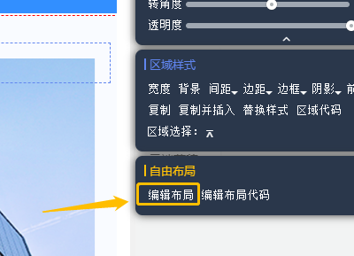 ① 選中模板頭圖之后,在【自由布局】面板,點(diǎn)擊【編輯布局】進(jìn)入到自由布局頁(yè)面。