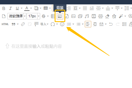 ① 在編輯頁(yè)面的最上面的導(dǎo)航欄有個(gè)【背景】,點(diǎn)擊這里即可進(jìn)入設(shè)置全文背景。