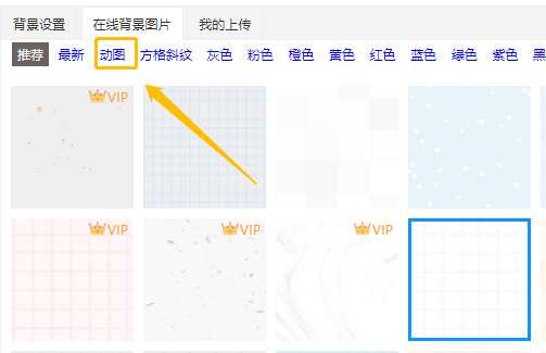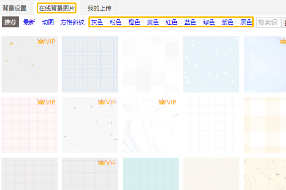 靜態(tài)背景:包含普通純色、漸變色以及方格斜紋,這里大家可以在【在線背景圖片】設(shè)置中進(jìn)行選擇,這里面提供了豐富的背景庫(kù)素材。