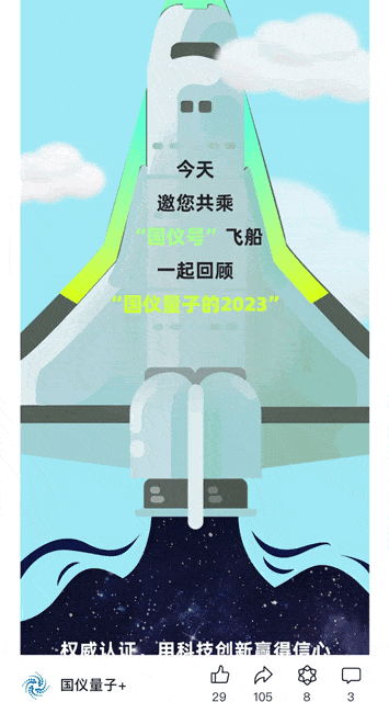 這篇來自國儀量子+的年終總結(jié)內(nèi)容,以乘坐飛船的創(chuàng)意思路,帶領(lǐng)大家回顧了品牌2023年的光輝時刻,在用戶滑動的過程中,原本空白的區(qū)域,會被填上色彩,出現(xiàn)一些具有重大意義的數(shù)字或者文字內(nèi)容,好似用戶邊閱讀邊在點亮2023年的高光時刻。