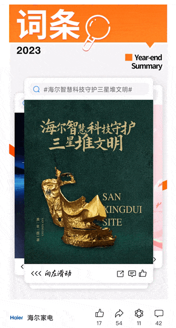 海爾家電的這篇年終總結(jié)推文內(nèi)容,采用了“熱搜詞條”的形式,對海爾企業(yè)在2023年度的精彩瞬間進(jìn)行了回顧。推文中,這些精心挑選出來的高光時刻以具體日期為序進(jìn)行展示,用戶只需輕點任一日期,即可在彈出的海報中查看該日期下對應(yīng)的詳細(xì)事件內(nèi)容。