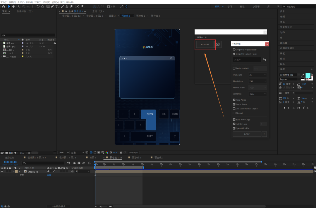 如果設(shè)計師是用AE制作的GIF,可以安裝一個GIFgun的插件,在導(dǎo)出GIF的時候會同時導(dǎo)出抽幀后的png格式的靜態(tài)圖。