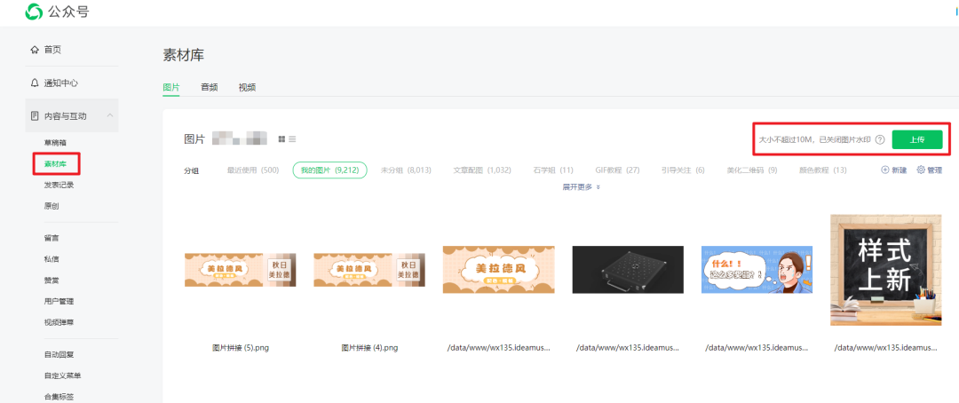 其實很簡單,將你不確定的圖單獨上傳至微信后臺的素材庫中,上傳成功則表示符合要求,上傳失敗則說明不符合要求。