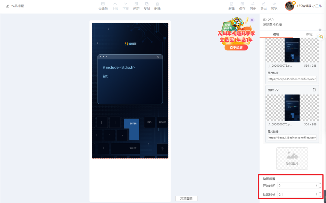 單擊組件到編輯區(qū)域后,選擇添加圖片將剛剛拆分出的靜態(tài)圖添加進去。