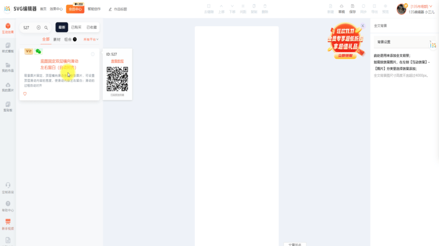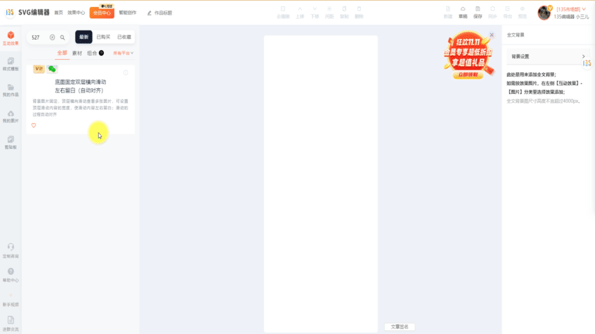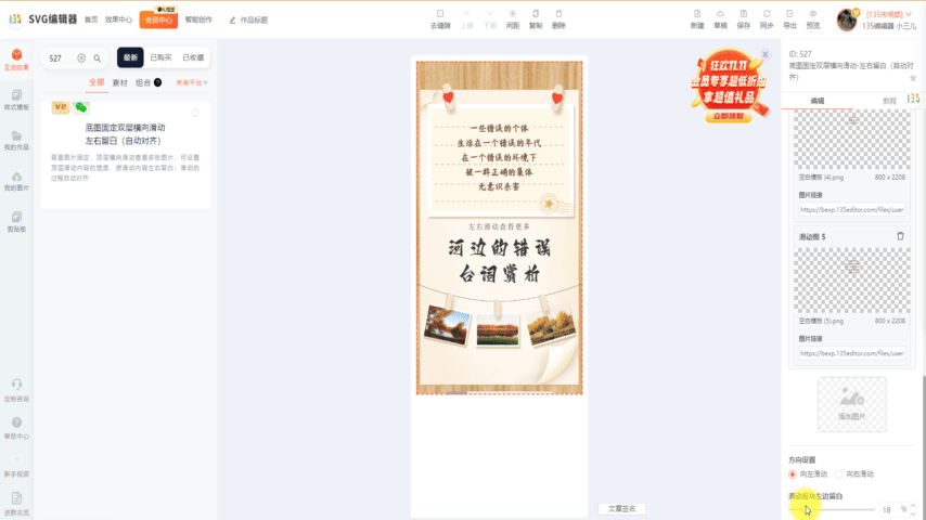 沒錯,最近SVG編輯器又上新了效果組件:底圖固定雙層橫向滑動-左右留白(自動對齊) 組件ID:527