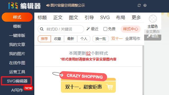 在135編輯器左側(cè),點擊SVG編輯器。