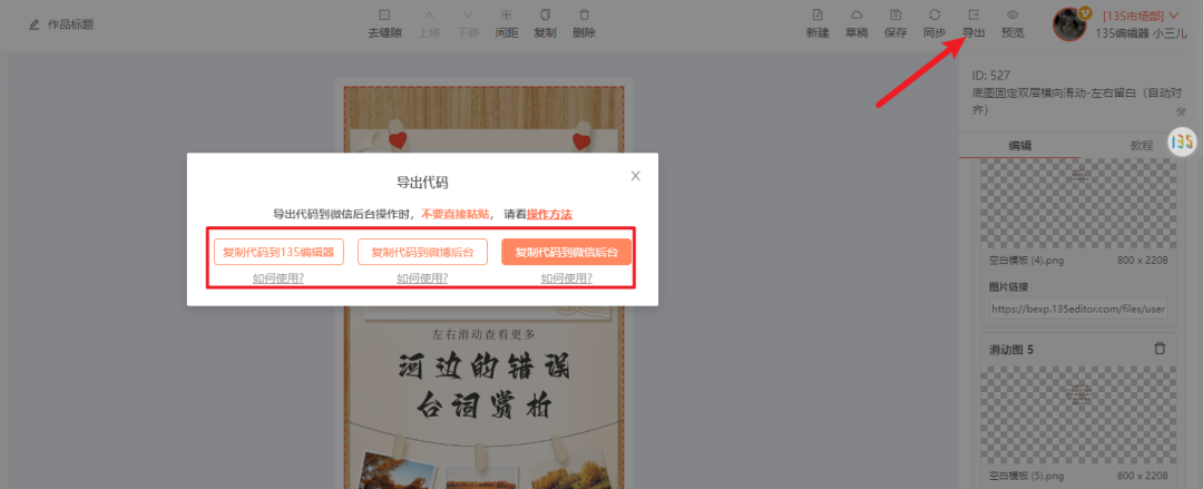 完成后就可以導(dǎo)出到編輯器或微信后臺。
