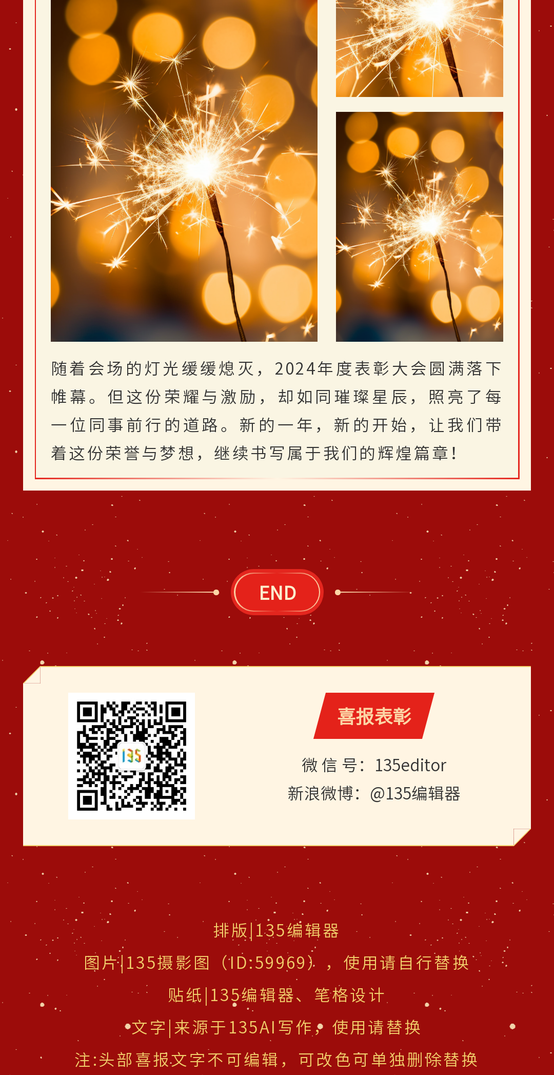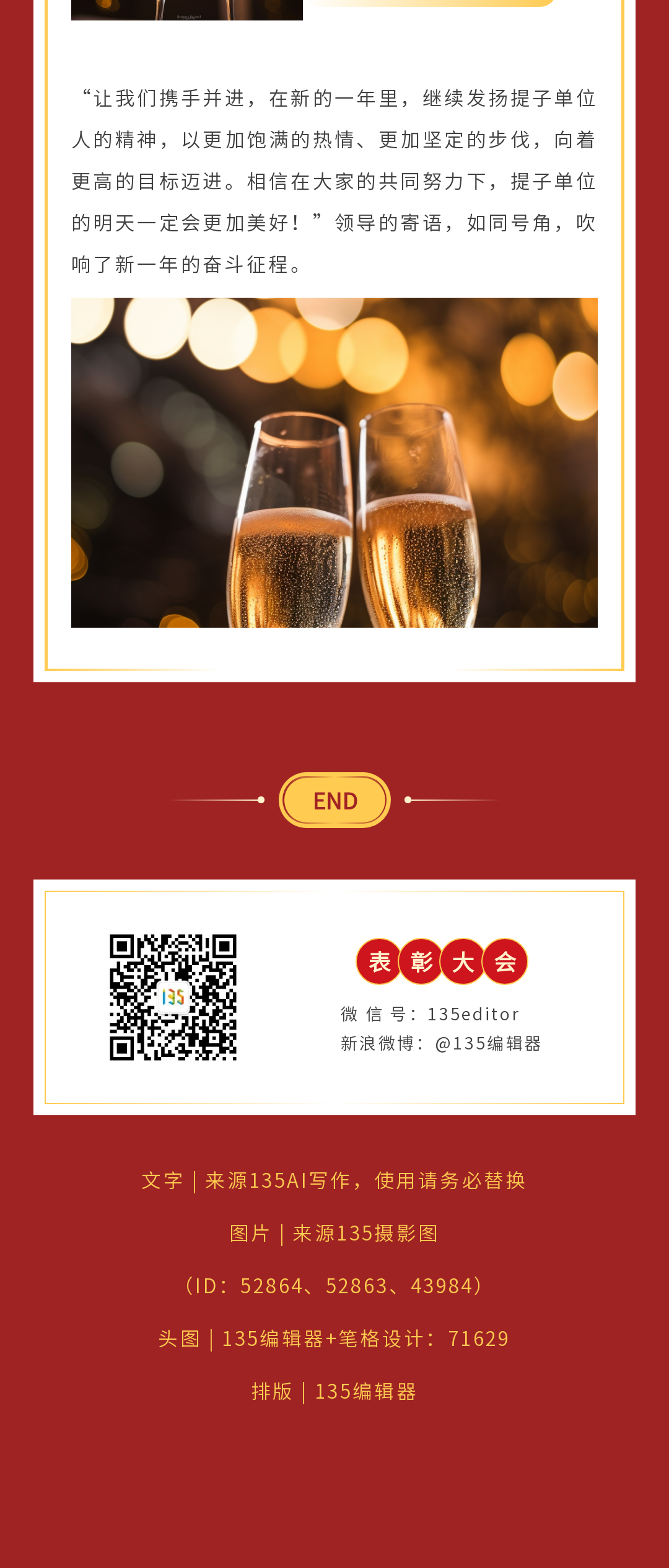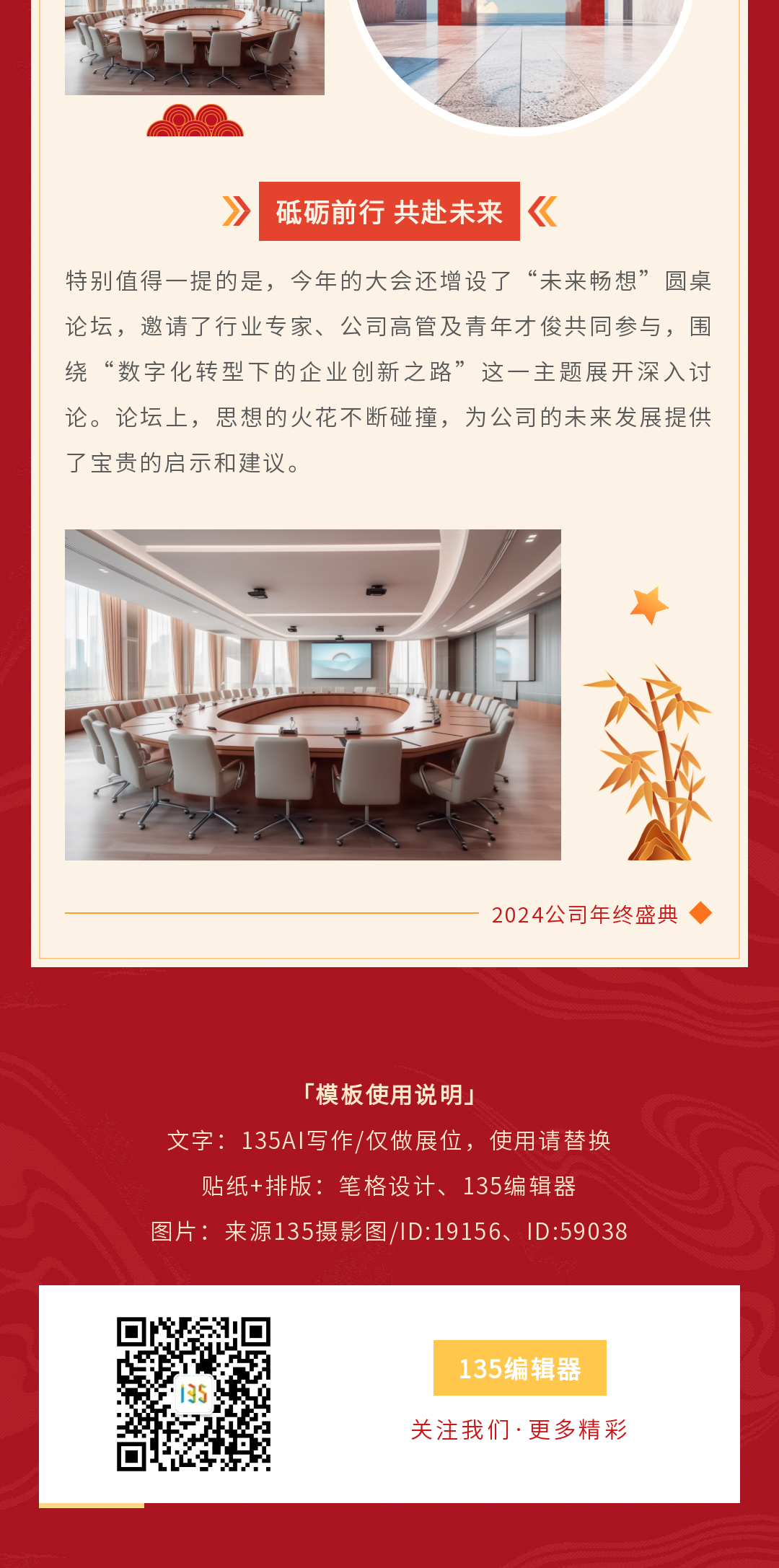為公眾號推文打造專業(yè)年終內(nèi)容?135編輯器企業(yè)服務(wù)提供全面的2024年終系列模板。包含年終總結(jié)、年終盛典、喜報等多種主題模板,快速提升您的公眾號推文質(zhì)量。精選模板ID,一鍵復(fù)制粘貼,讓您的年終宣傳更加高效。