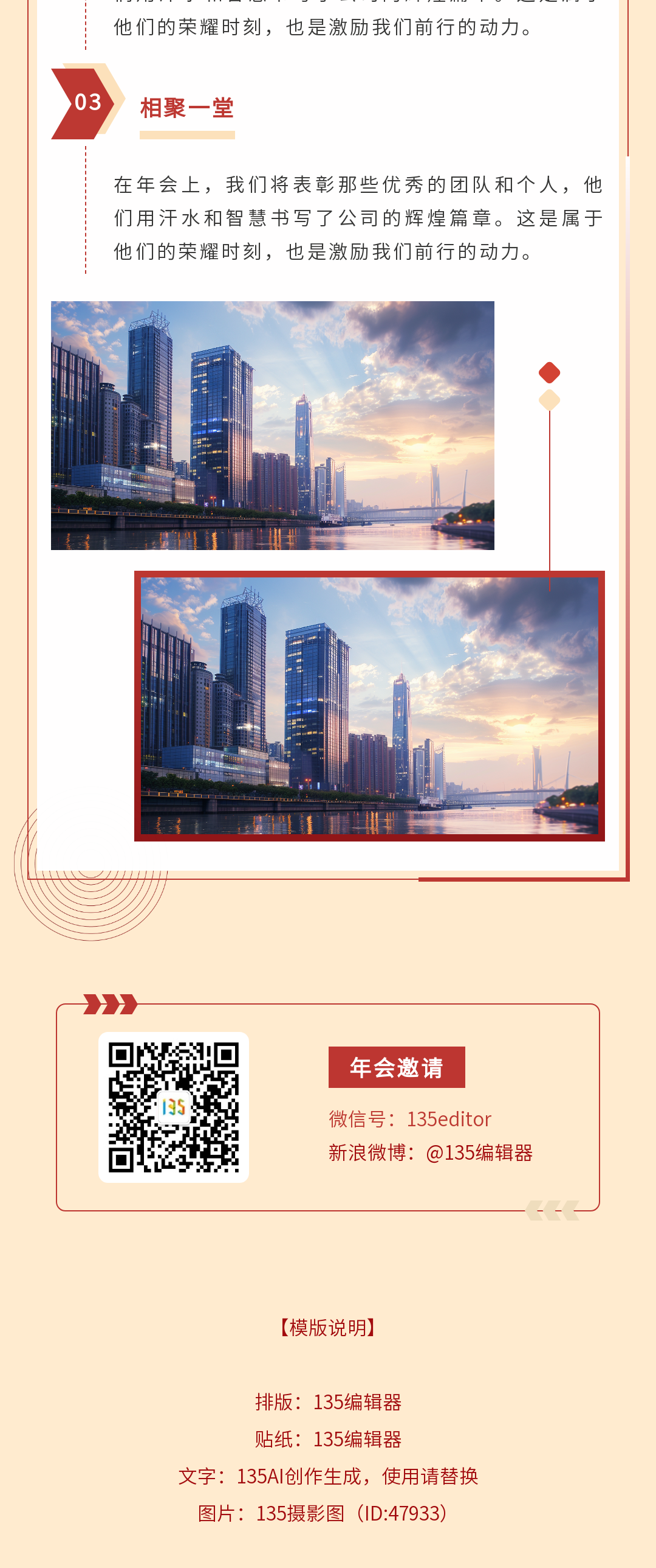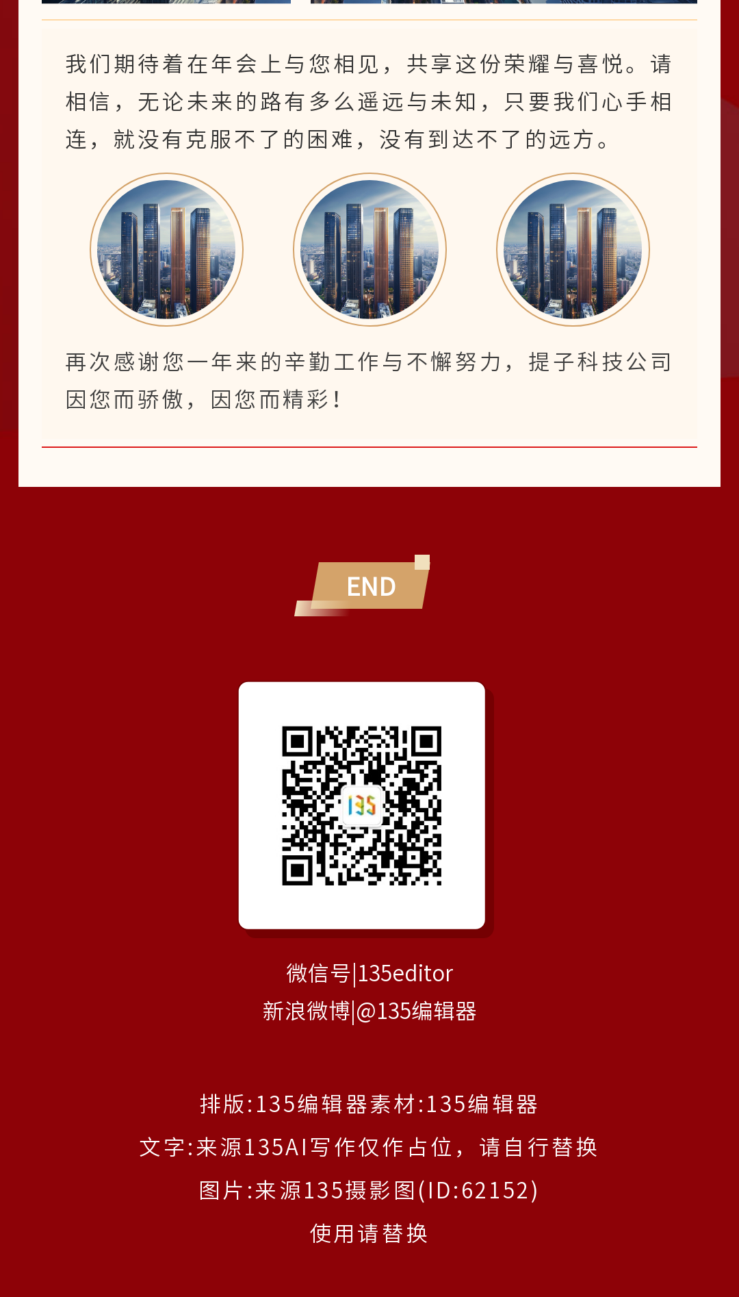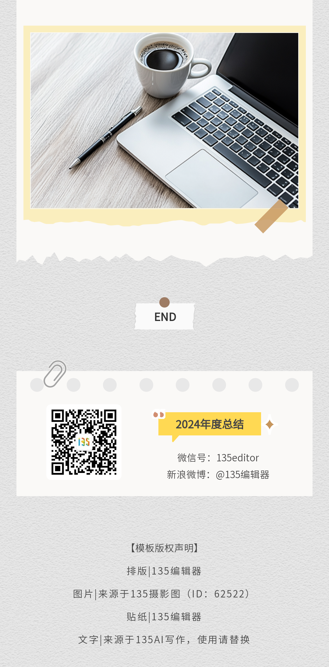 為公眾號推文打造專業(yè)年終內(nèi)容?135編輯器企業(yè)服務(wù)提供全面的2024年終系列模板。包含年終總結(jié)、年終盛典、喜報等多種主題模板,快速提升您的公眾號推文質(zhì)量。精選模板ID,一鍵復(fù)制粘貼,讓您的年終宣傳更加高效。