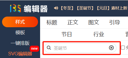 在135編輯器里面搜索“圣誕節(jié)”,即可使用?