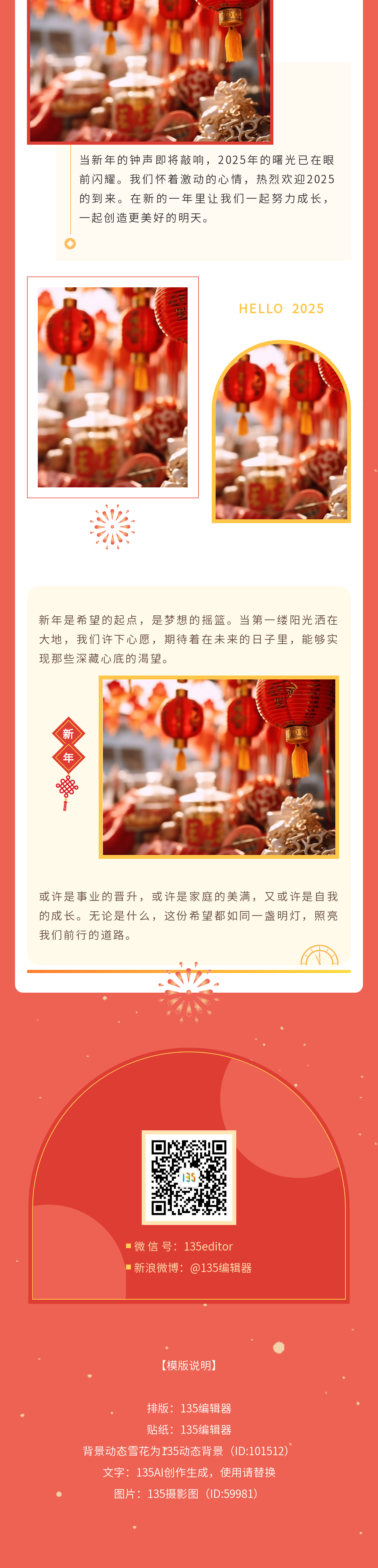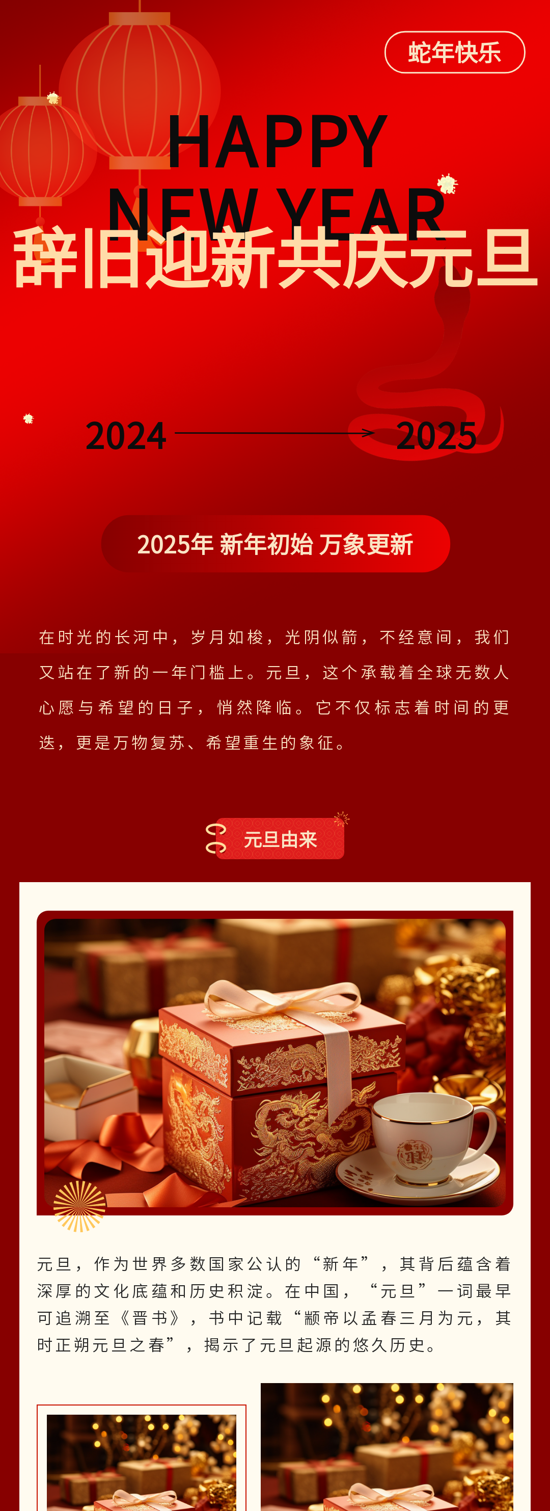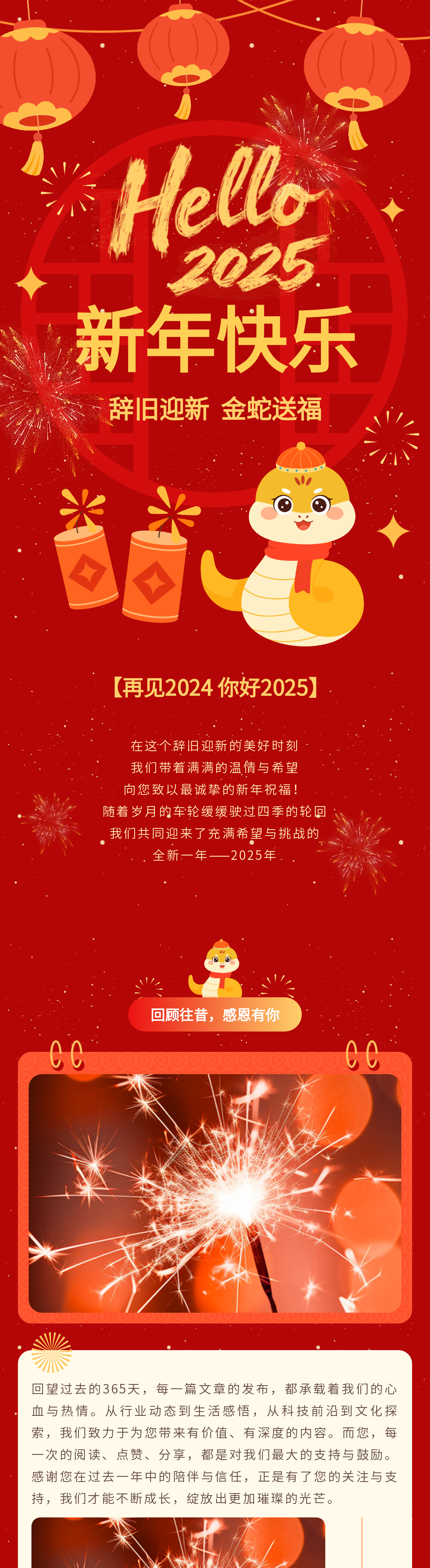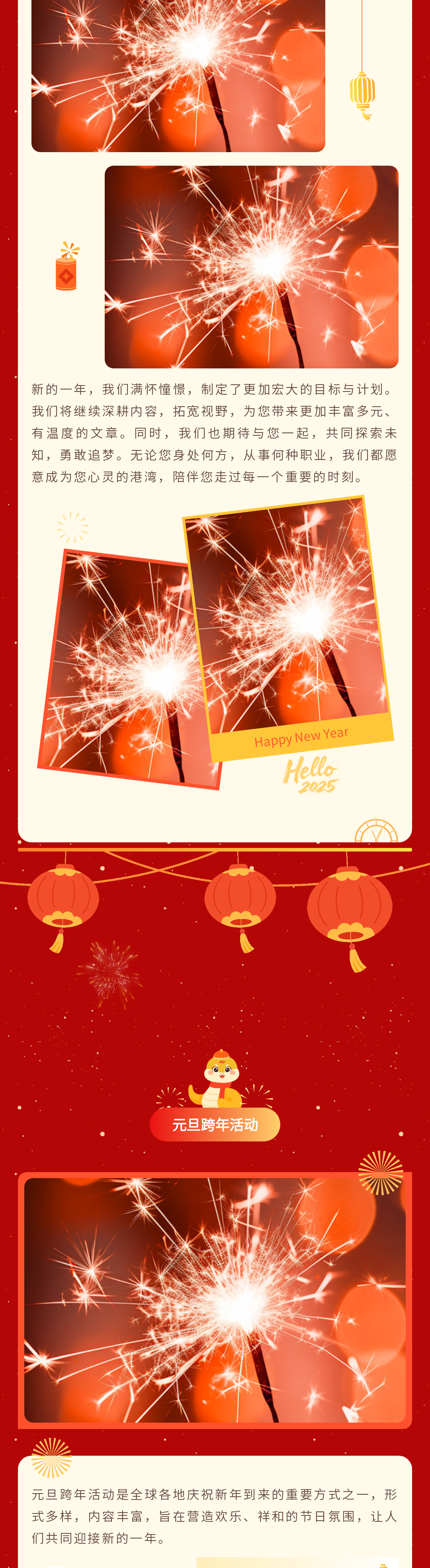 迎接2025年元旦節(jié),135編輯器為您精心準(zhǔn)備了一系列公眾號(hào)推文模板和公眾號(hào)模板,讓您的節(jié)日內(nèi)容更加豐富多彩。從煙花到小蛇,喜慶元素一應(yīng)俱全,助您輕松打造元旦節(jié)特色內(nèi)容。立即查看并使用這些精美的模板,讓您的公眾號(hào)在新年伊始就脫穎而出。