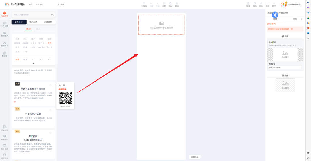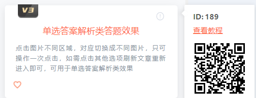 #找到我們本次需要使用的效果組件:?jiǎn)芜x答案解析類答題效果 組件id:189