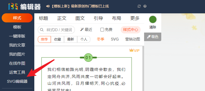 #在135編輯器左側(cè)入口中進(jìn)入svg編輯器。