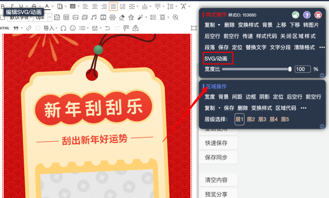在編輯界面,我們可以修改SVG樣式的文案以及圖片中的元素,選擇【編輯樣式原圖】即可進(jìn)行編輯。