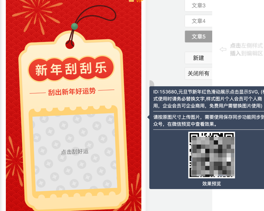 將鼠標(biāo)輕放在樣式上,會出現(xiàn)瀏覽的二維碼,用手機(jī)微信掃碼,即可直觀感受此款SVG玩法。