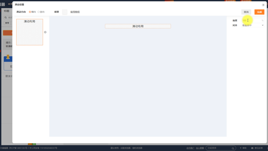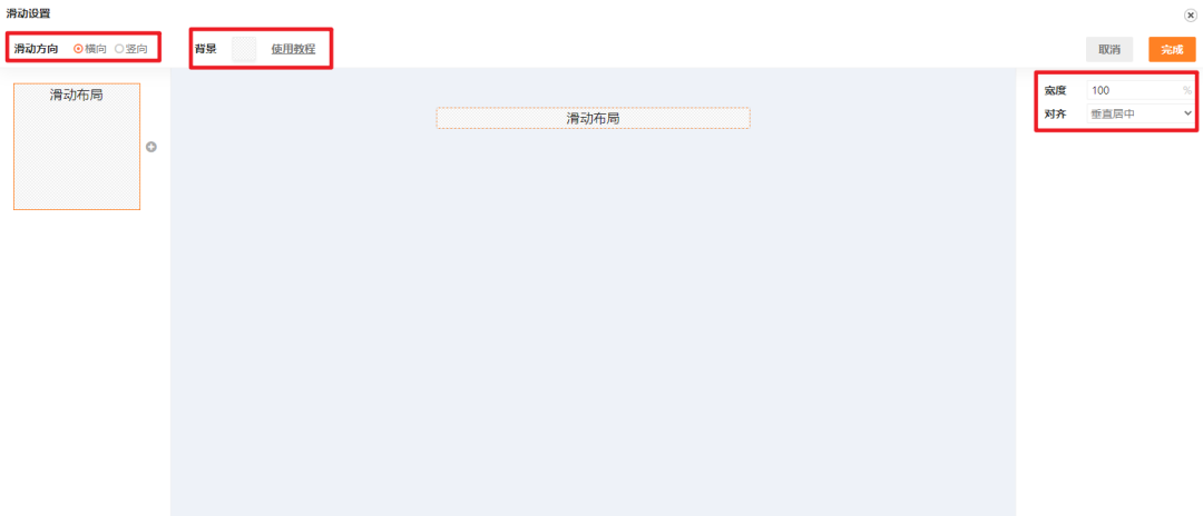 在滑動布局中,你可以設(shè)置滑動方向(豎向或橫向)、背景、寬度等內(nèi)容。