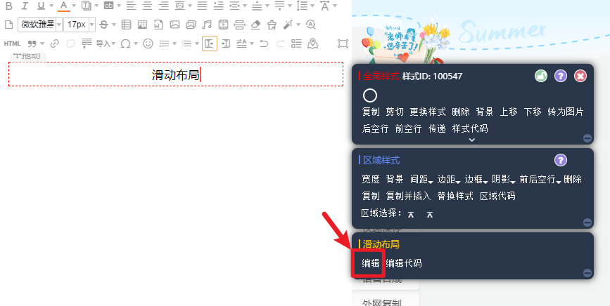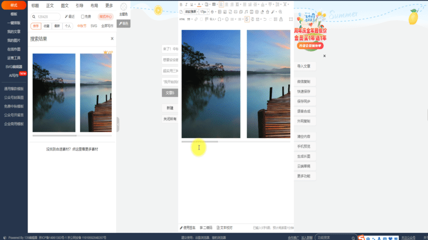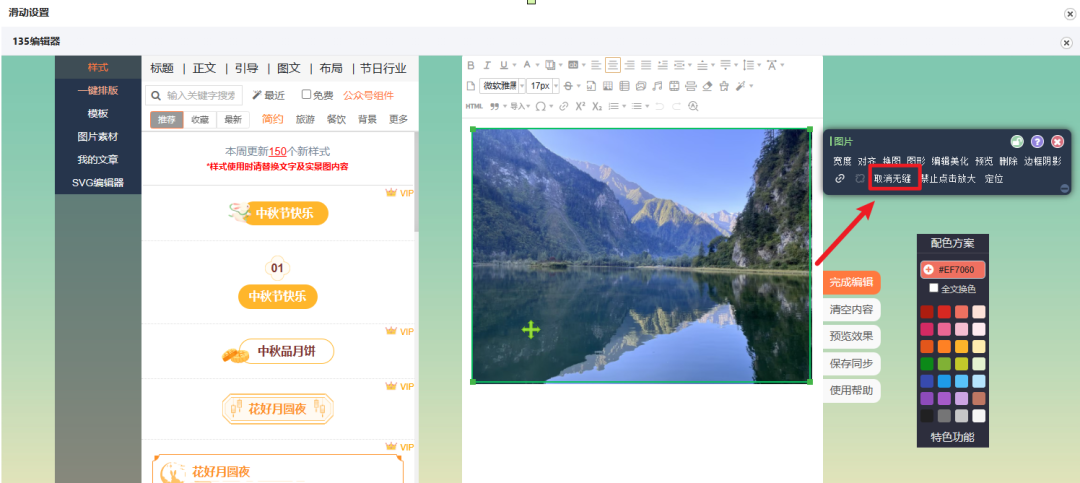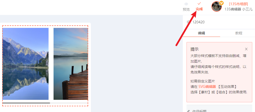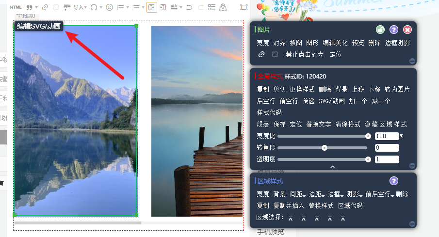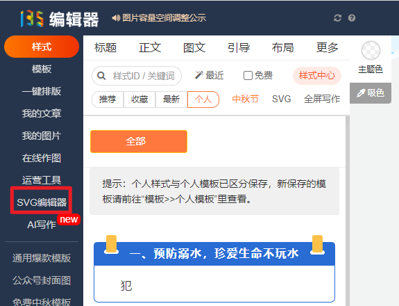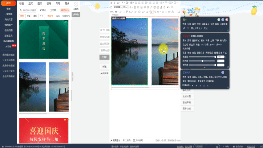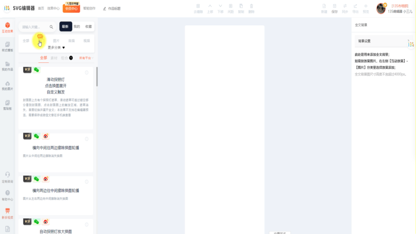 如果你需要更復(fù)雜的滑動效果,如添加超鏈接、小程序等,可以通過135編輯器左側(cè)的SVG編輯器實現(xiàn)。