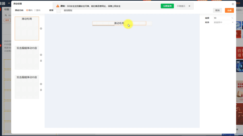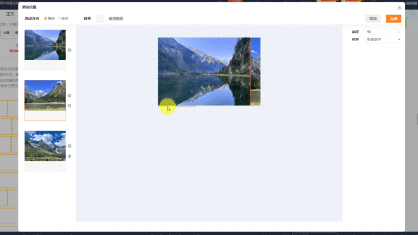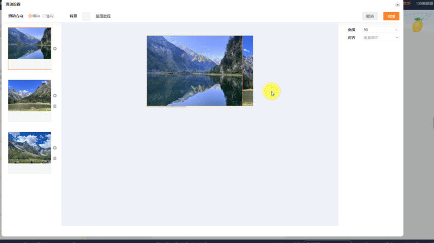 雙擊每塊滑動布局,進(jìn)入編輯頁面后上傳圖片。確保所有滑動素材的寬高一致。
