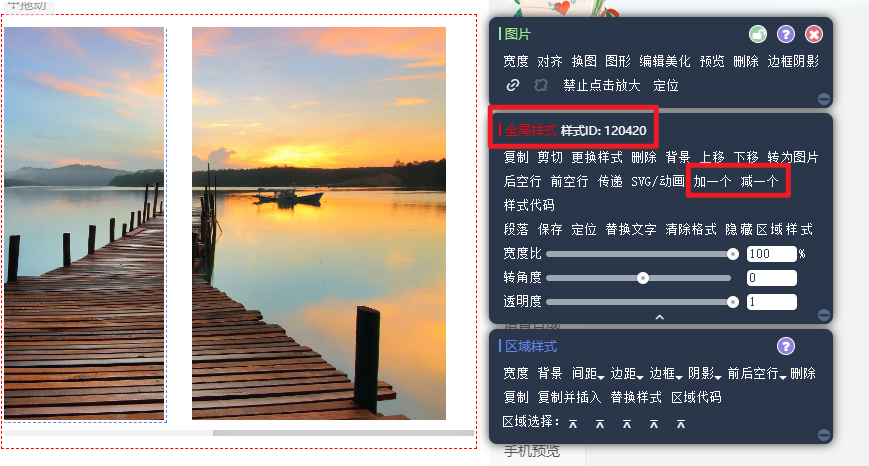 若要增加或減少滑動中的圖片數(shù)量,同樣以樣式120420為例: