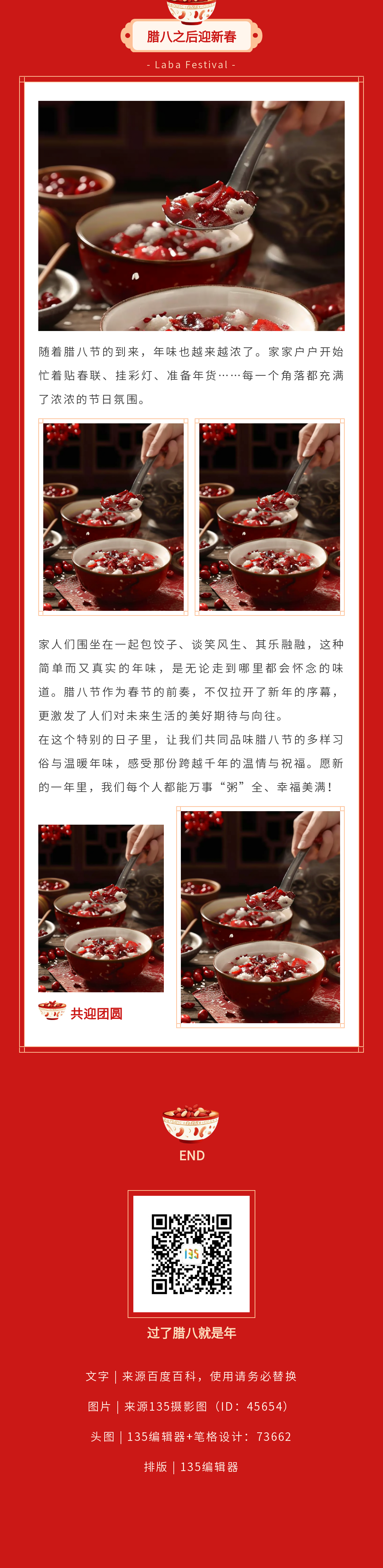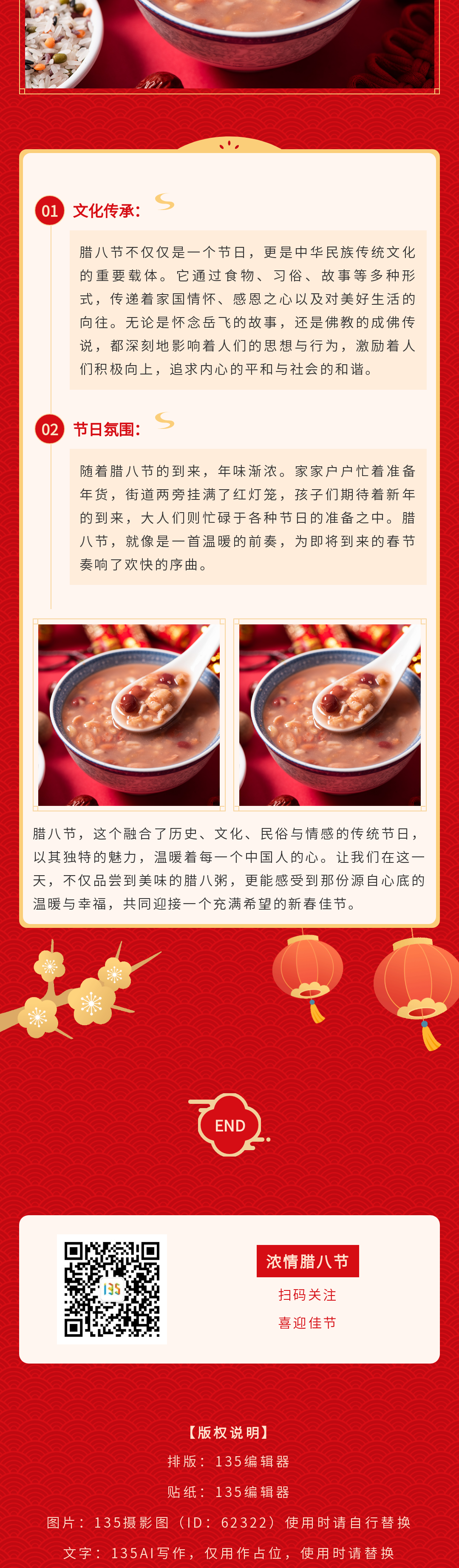 迎接臘八節(jié),為您的公眾號增添節(jié)日氣氛!精選多款臘八節(jié)主題的公眾號模板,助力您的內(nèi)容更具吸引力。無論是海報、文章排版還是互動設(shè)計,都能讓您在臘八節(jié)期間脫穎而出。立即查看,為您的公眾號增添節(jié)日魅力!
