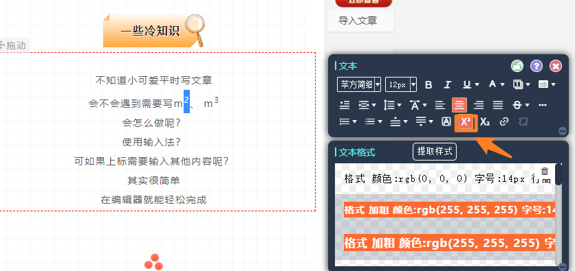 在排版中,有時需要輸入上標或下標,例如m2、m3等。135編輯器可以輕松實現(xiàn)這一功能。