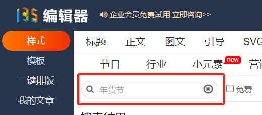 在135編輯器里面搜索“年貨節(jié)”,即可使用?
