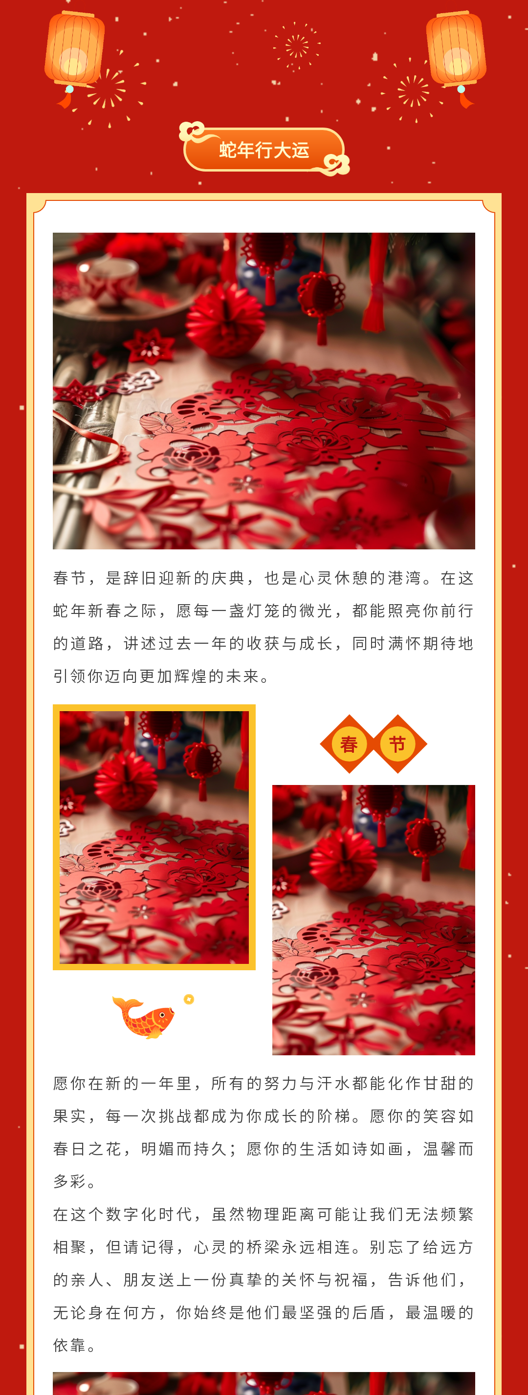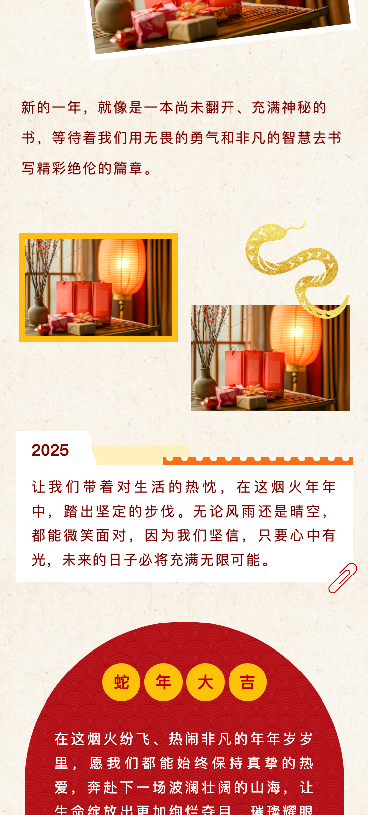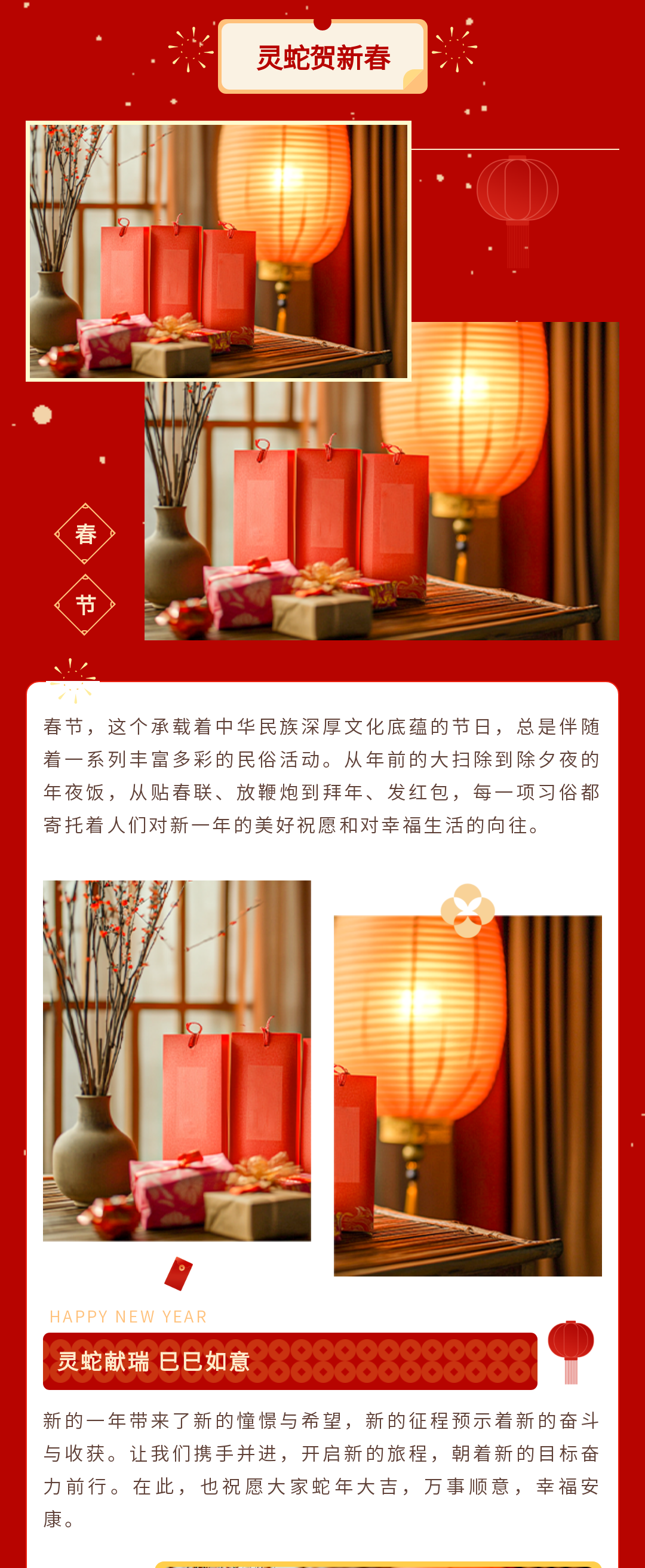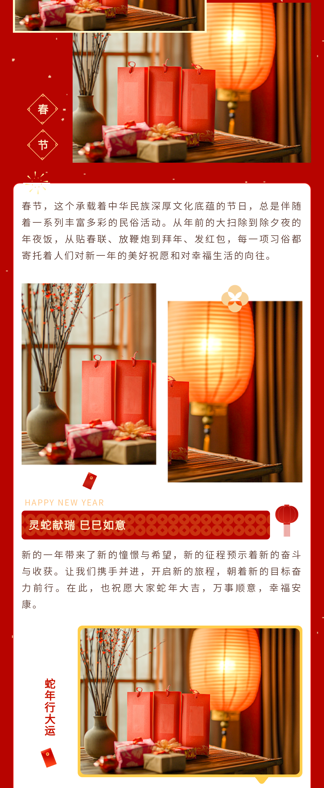 尋找公眾號(hào)春節(jié)推文模板?這里有一份超全的資源!包含春節(jié)慶祝、放假通知、慰問活動(dòng)、趣味活動(dòng)、年貨購物節(jié)、年終盛宴、年夜飯預(yù)訂宣傳等多場景模板,還有實(shí)用的春節(jié)文案,助你輕松打造年味十足的公眾號(hào)推文,讓粉絲感受到濃濃的節(jié)日氛圍,趕快收藏吧!