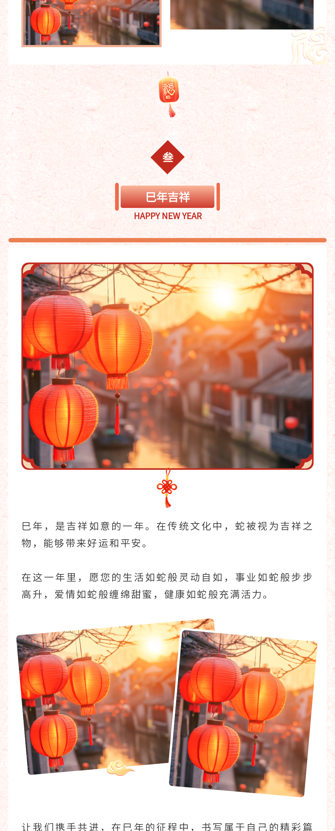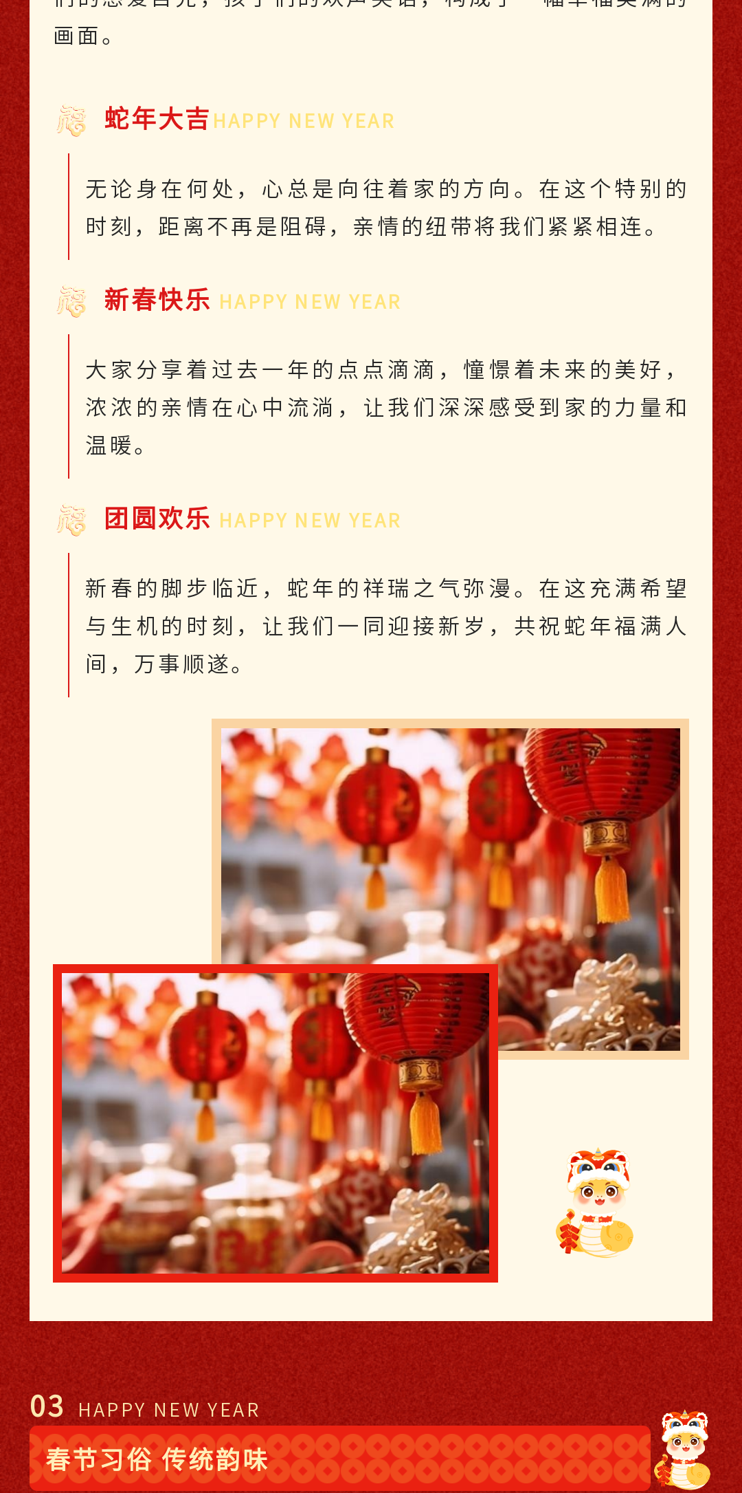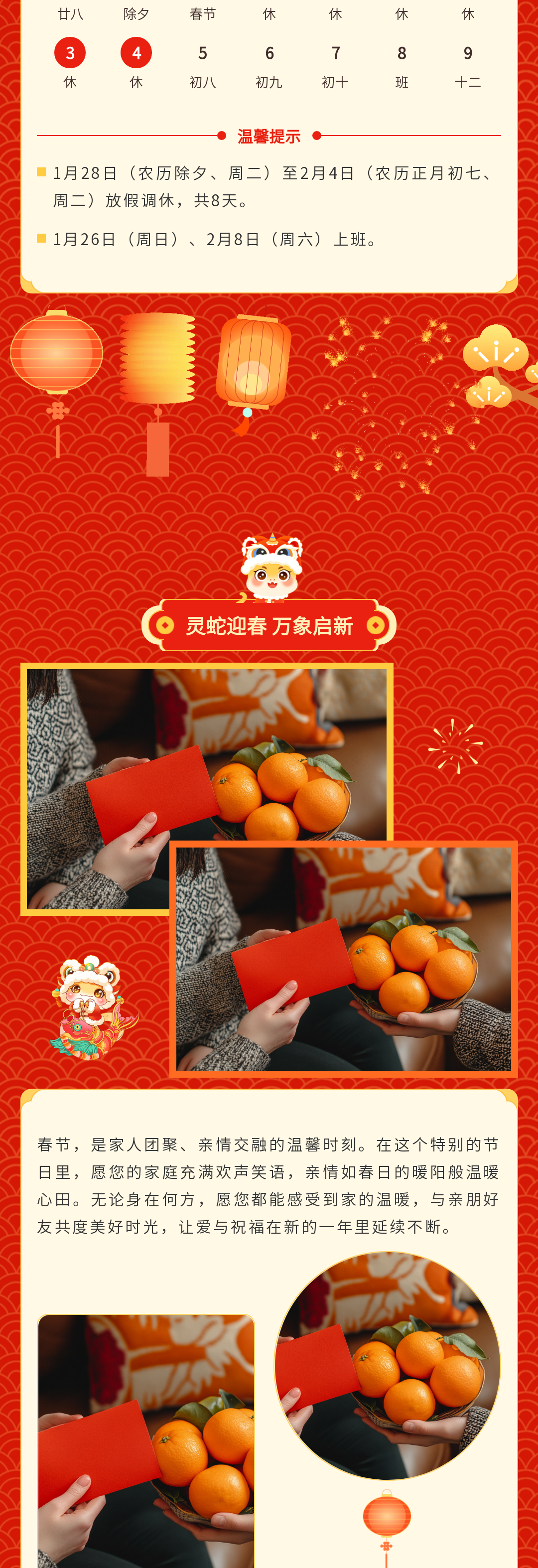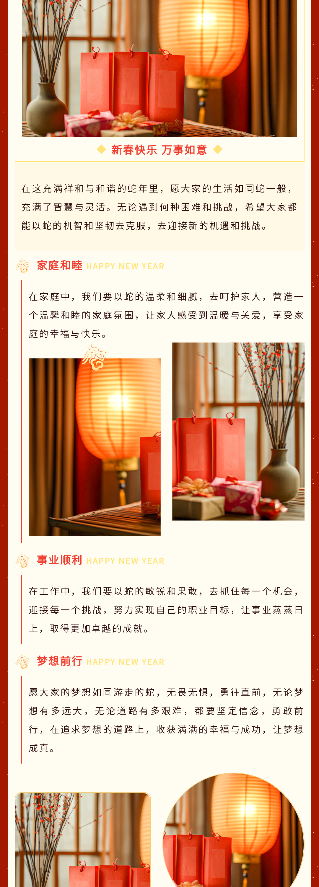 尋找公眾號(hào)春節(jié)推文模板?這里有一份超全的資源!包含春節(jié)慶祝、放假通知、慰問活動(dòng)、趣味活動(dòng)、年貨購物節(jié)、年終盛宴、年夜飯預(yù)訂宣傳等多場景模板,還有實(shí)用的春節(jié)文案,助你輕松打造年味十足的公眾號(hào)推文,讓粉絲感受到濃濃的節(jié)日氛圍,趕快收藏吧!