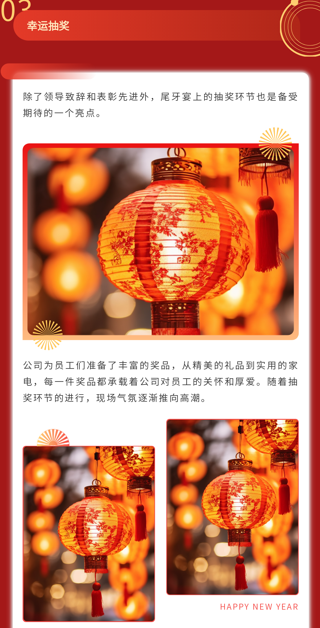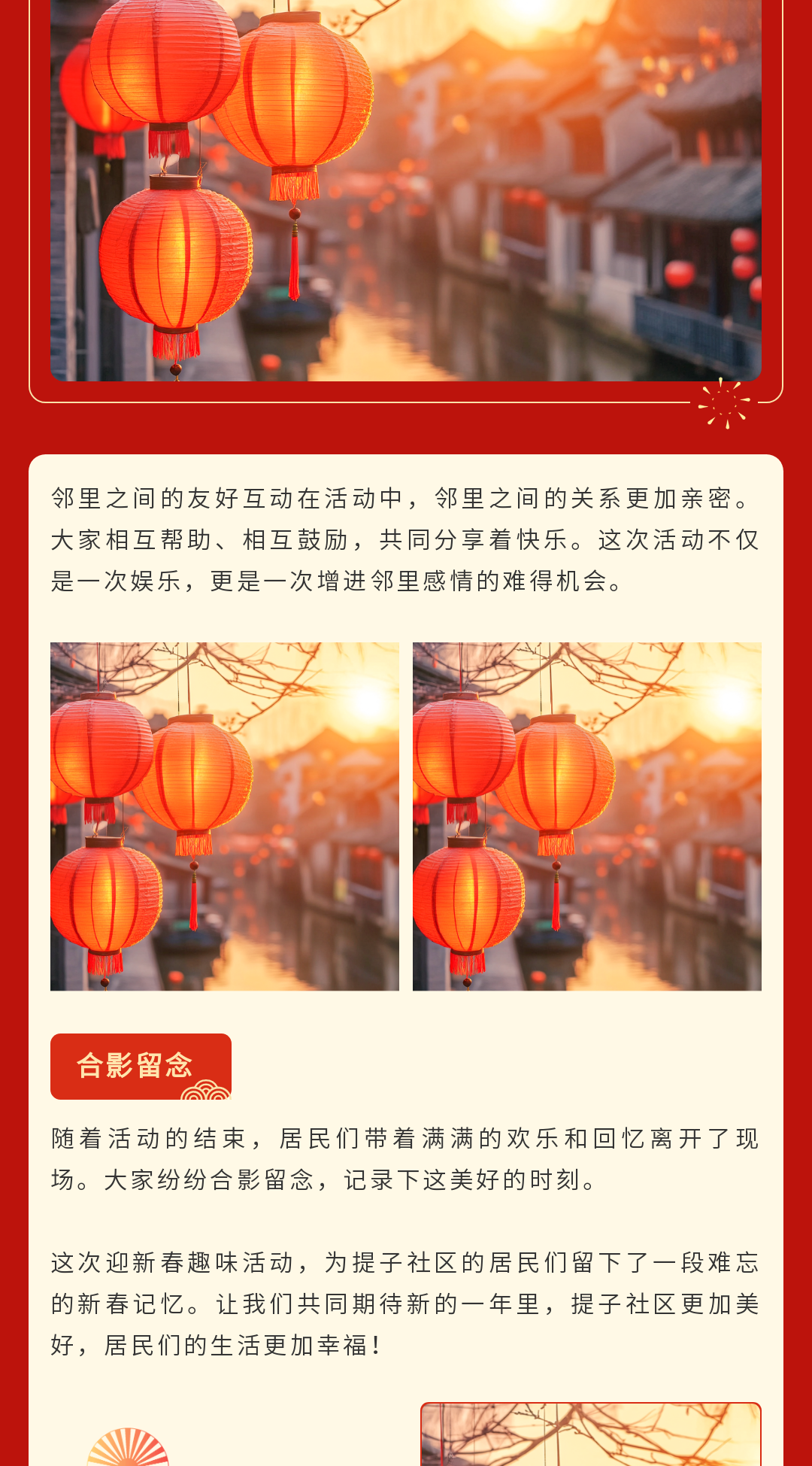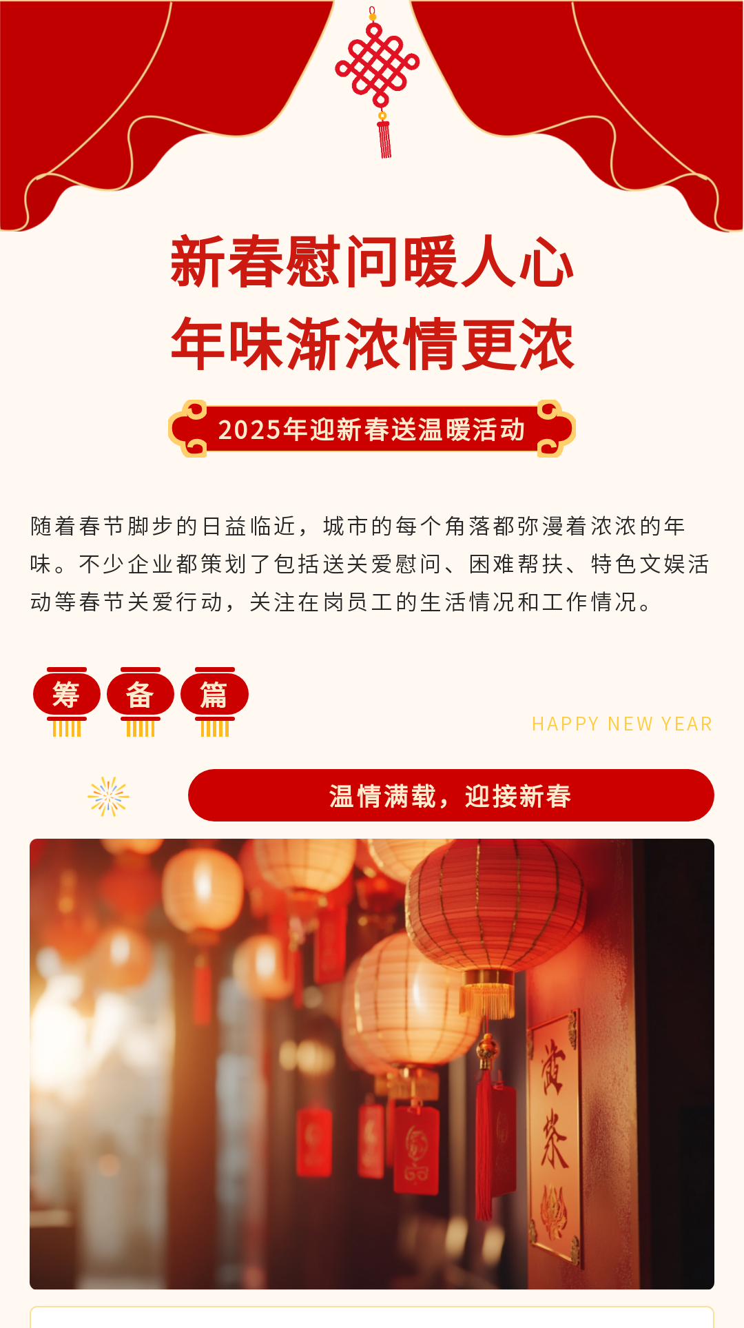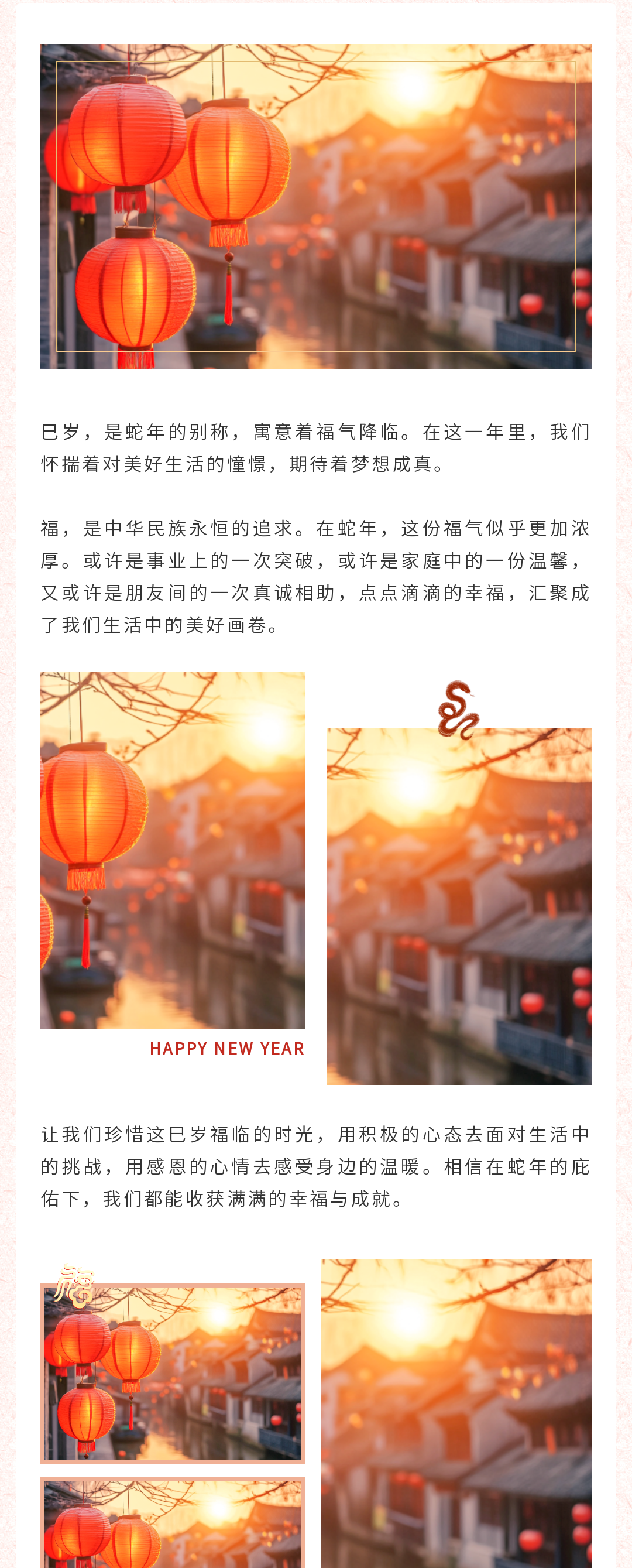 尋找公眾號(hào)春節(jié)推文模板?這里有一份超全的資源!包含春節(jié)慶祝、放假通知、慰問活動(dòng)、趣味活動(dòng)、年貨購物節(jié)、年終盛宴、年夜飯預(yù)訂宣傳等多場景模板,還有實(shí)用的春節(jié)文案,助你輕松打造年味十足的公眾號(hào)推文,讓粉絲感受到濃濃的節(jié)日氛圍,趕快收藏吧!