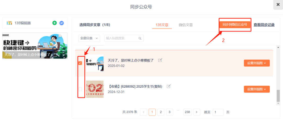 選擇我們需要同步的文章——點擊同步公眾號即可。