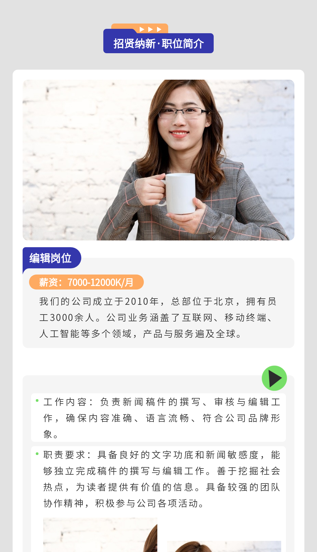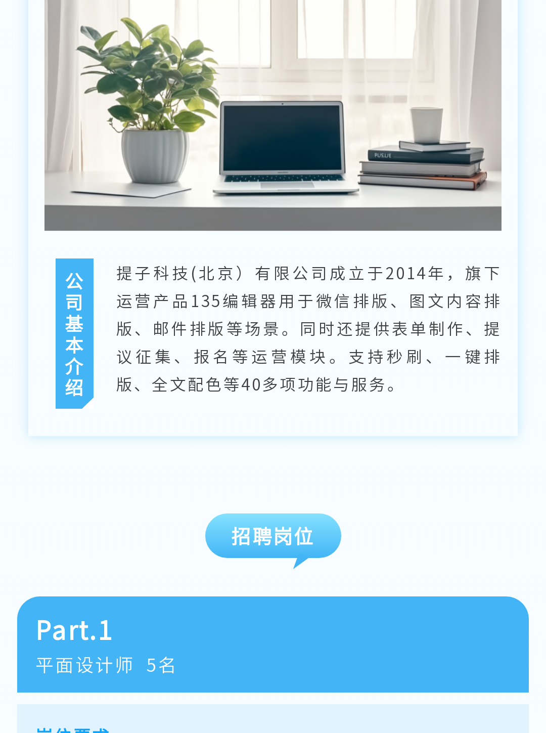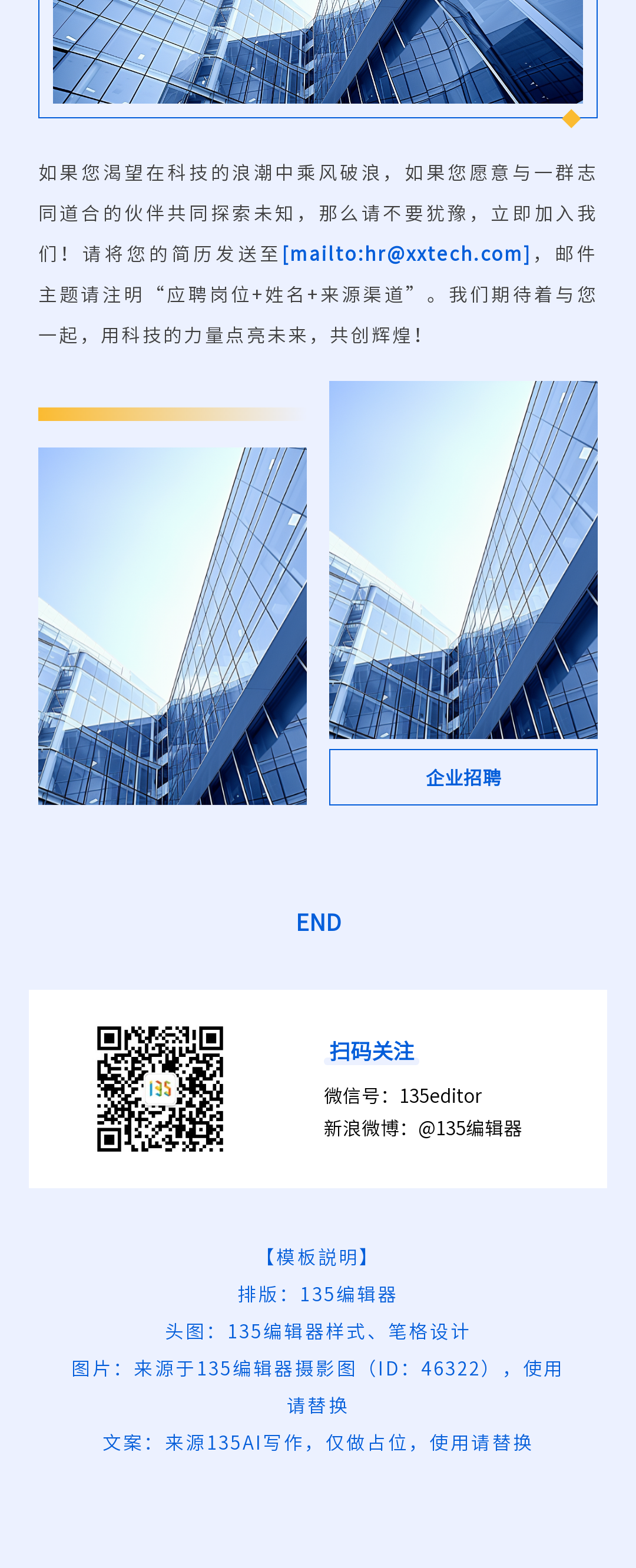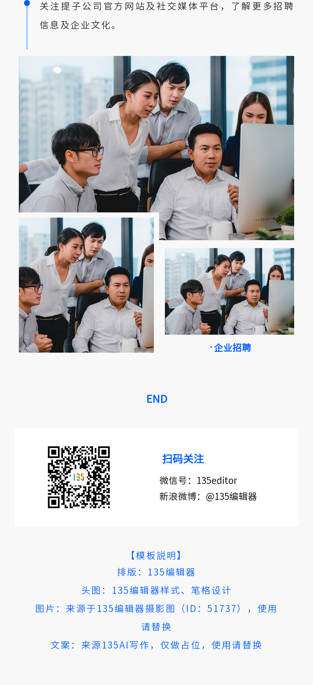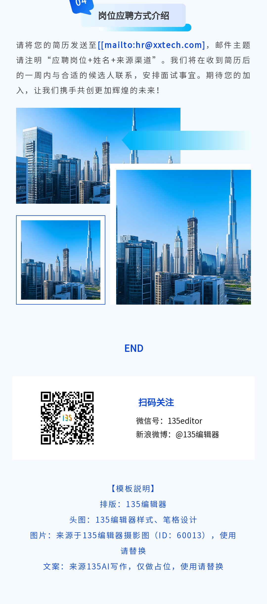 【2025春招季】135編輯器提供政務(wù)、科技、教育等7大行業(yè)招聘推文模板,含模板ID一鍵套用!HR快速提升招聘宣傳效果,海量簡歷輕松獲取。免費下載各行業(yè)公眾號招聘模板,助力企業(yè)高效招人!
