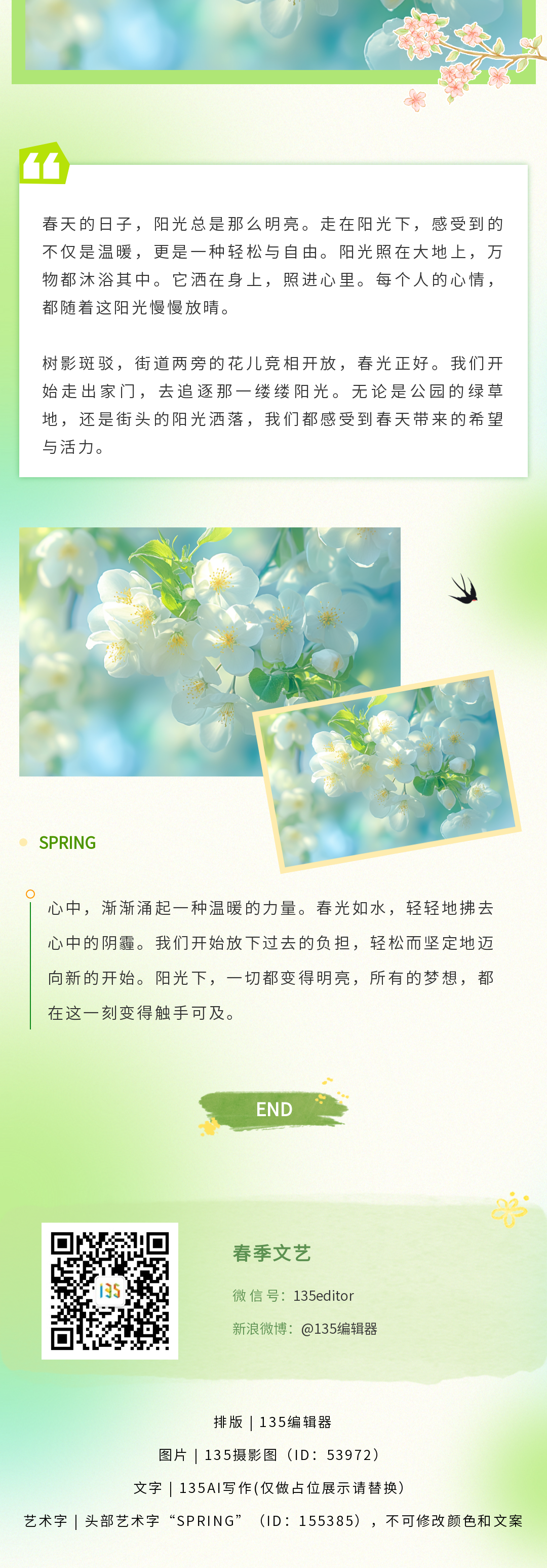 135編輯器精選春分節(jié)氣模板合集,提供微信公眾號(hào)排版設(shè)計(jì)、春分海報(bào)模板、ID搜索一鍵調(diào)用。包含多圖輪播、節(jié)氣元素樣式,支持在線編輯使用,助力快速打造春日主題內(nèi)容。