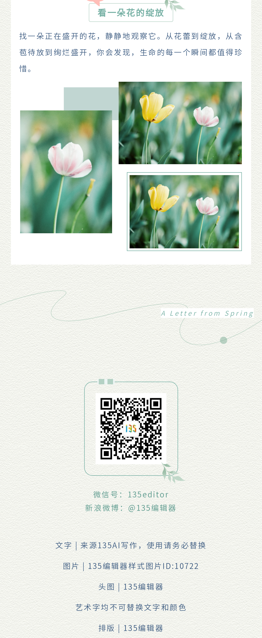 當春天的風揉碎冬日的灰調(diào),大地鋪開流動的調(diào)色盤,櫻花粉、新芽綠、鳶尾藍等色彩構(gòu)成浪漫詩意的春天。三兒為你整理6組超好看的春日配色方案及多組實用模板,讓你的公眾號排版瞬間提升格調(diào),解鎖春日美學密碼,趕緊收藏!