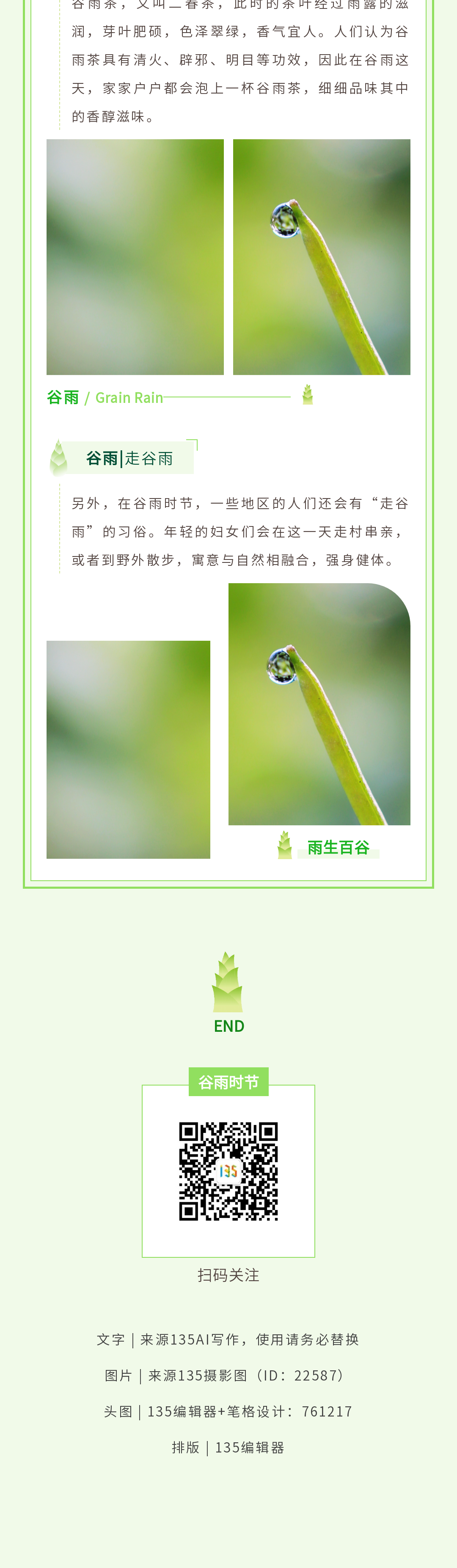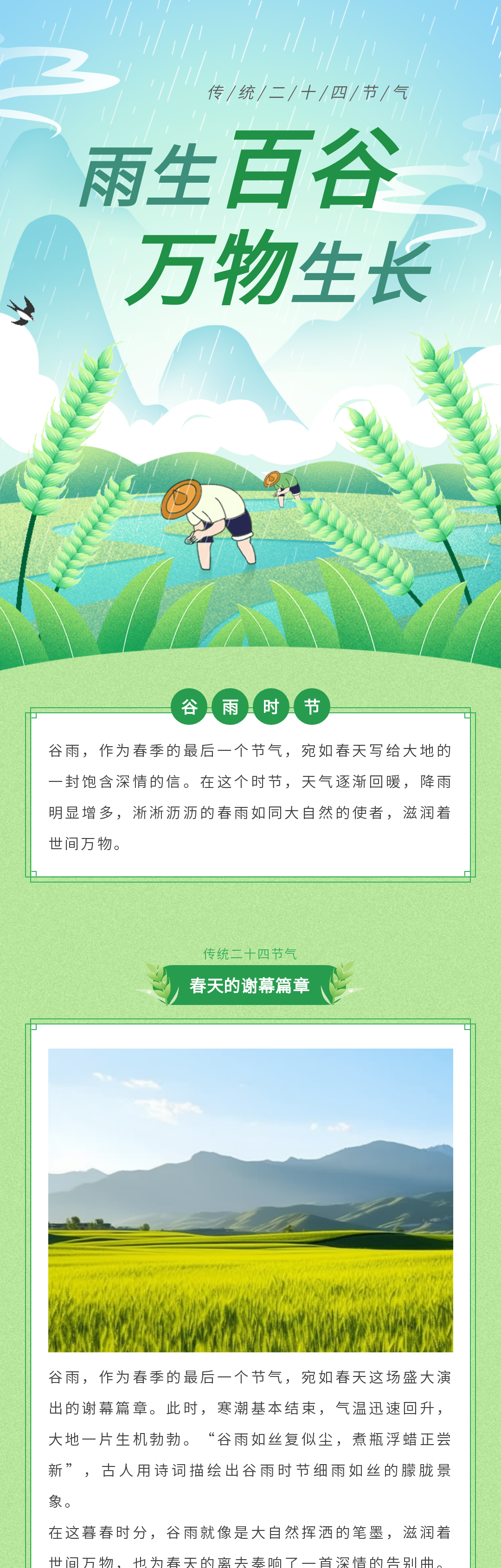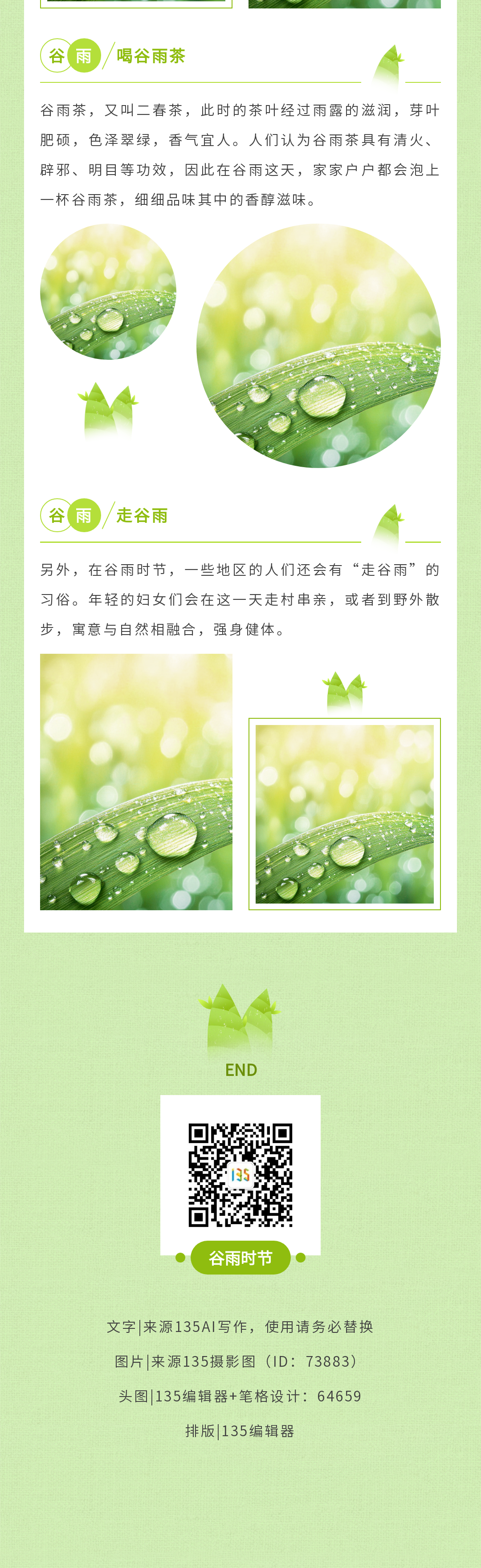 谷雨是二十四節(jié)氣之一,象征著春天的告別與新生。本文為您精選谷雨主題的公眾號模板,包括節(jié)氣素材、文案設計等,助您輕松打造春日氛圍感內(nèi)容。模板資源豐富,操作簡單,提升公眾號內(nèi)容吸引力!