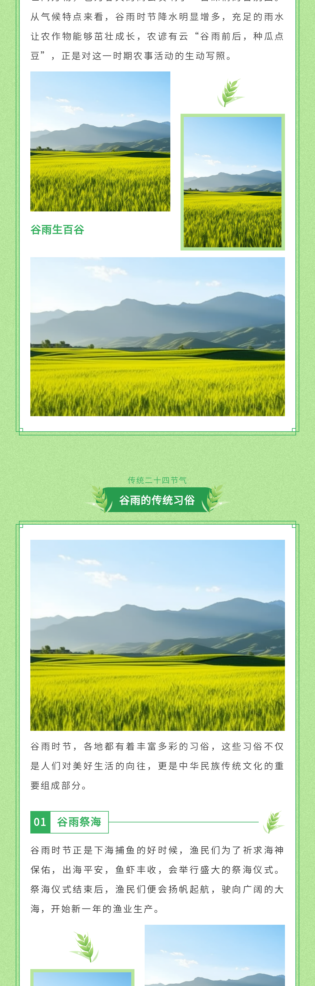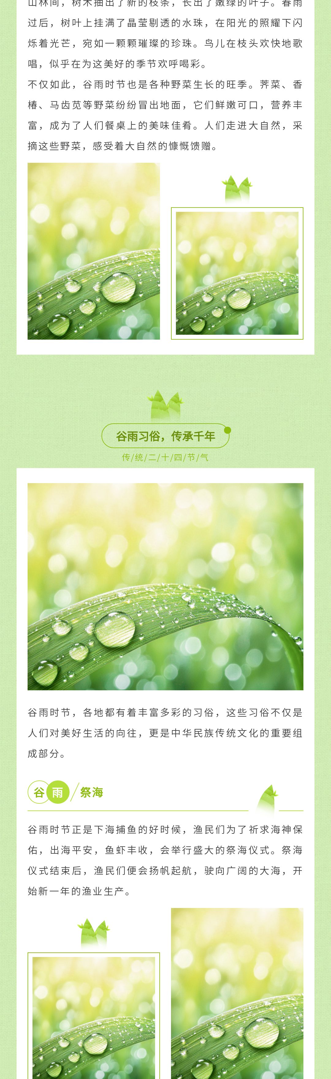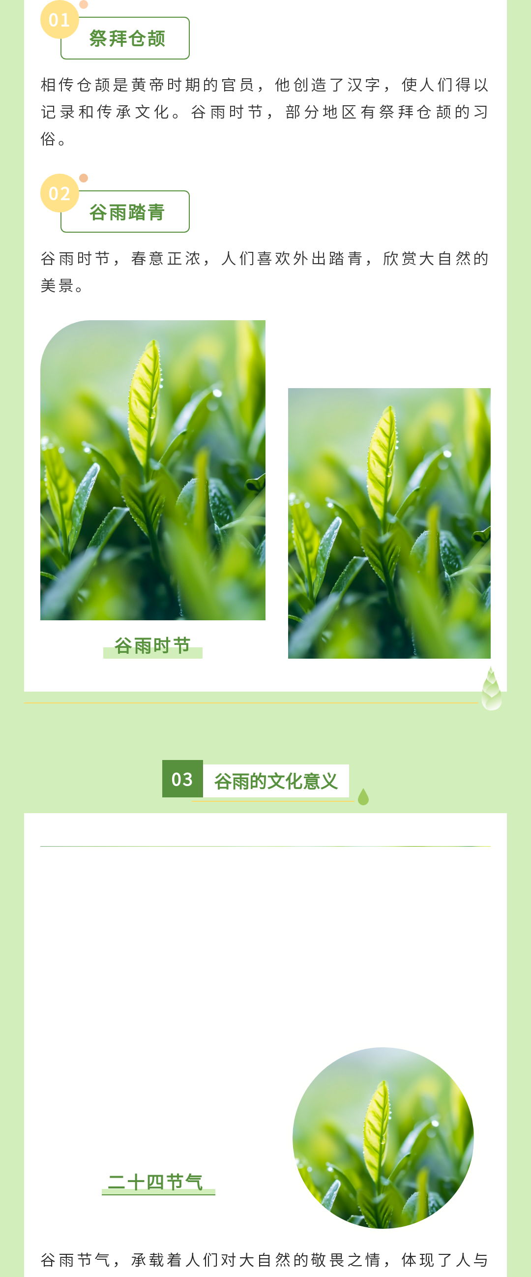 谷雨是二十四節(jié)氣之一,象征著春天的告別與新生。本文為您精選谷雨主題的公眾號模板,包括節(jié)氣素材、文案設計等,助您輕松打造春日氛圍感內(nèi)容。模板資源豐富,操作簡單,提升公眾號內(nèi)容吸引力!