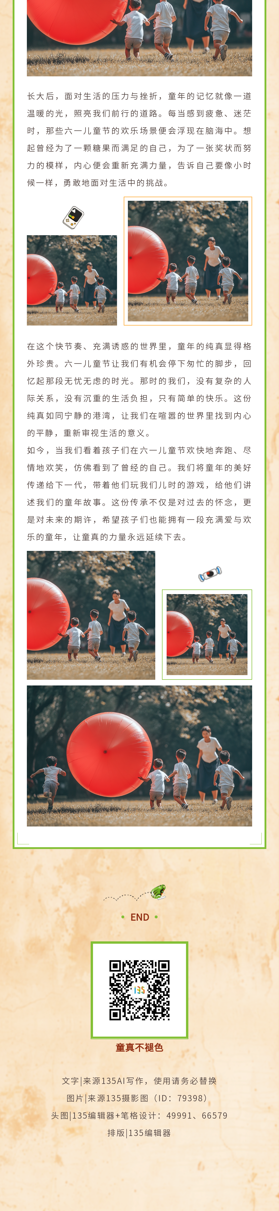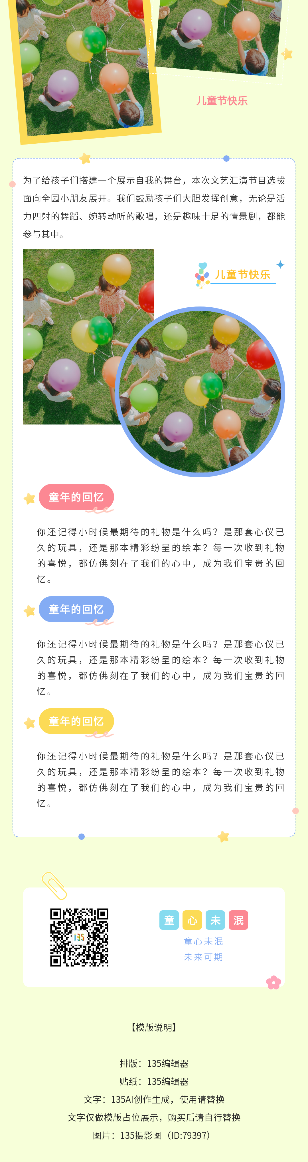 六一兒童節(jié)將至,本文帶來一組充滿童趣的文案和公眾號排版模板。文案涵蓋小朋友的童年記憶和大朋友的成年真相,模板樣式多樣,操作簡單。輸入模板ID即可查找使用,助力你的公眾號文章輕松吸引讀者。