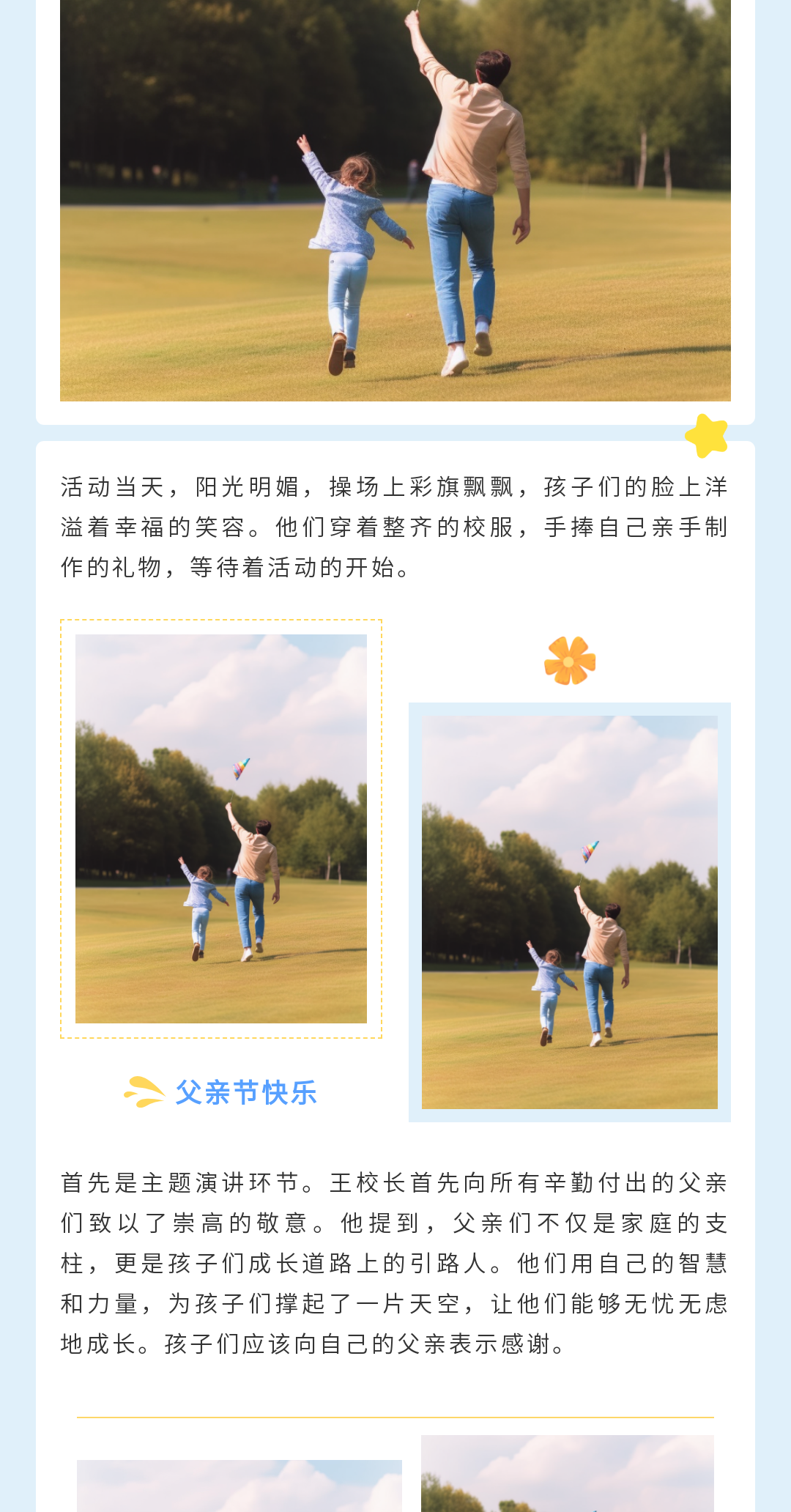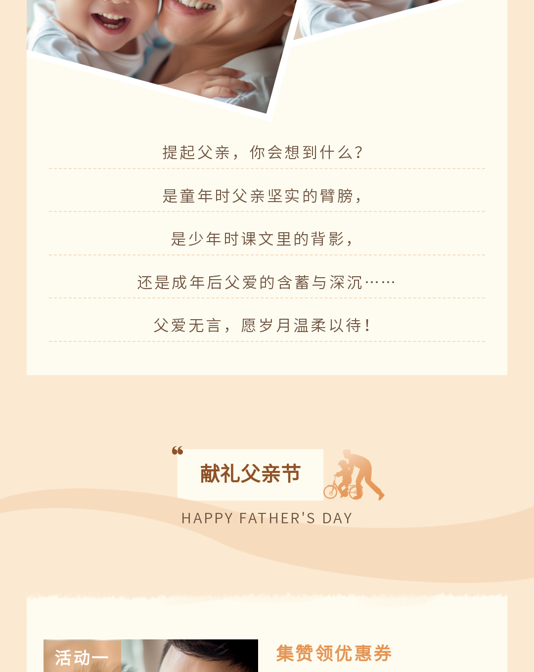 父親節(jié)將至,公眾號(hào)推文如何排版?本文為你精選超多高質(zhì)量父親節(jié)細(xì)分主題模板,涵蓋祝福、校園活動(dòng)、電商活動(dòng)等多種場(chǎng)景,助力你的公眾號(hào)推文在節(jié)日里吸睛無(wú)數(shù),趕緊收藏使用吧!