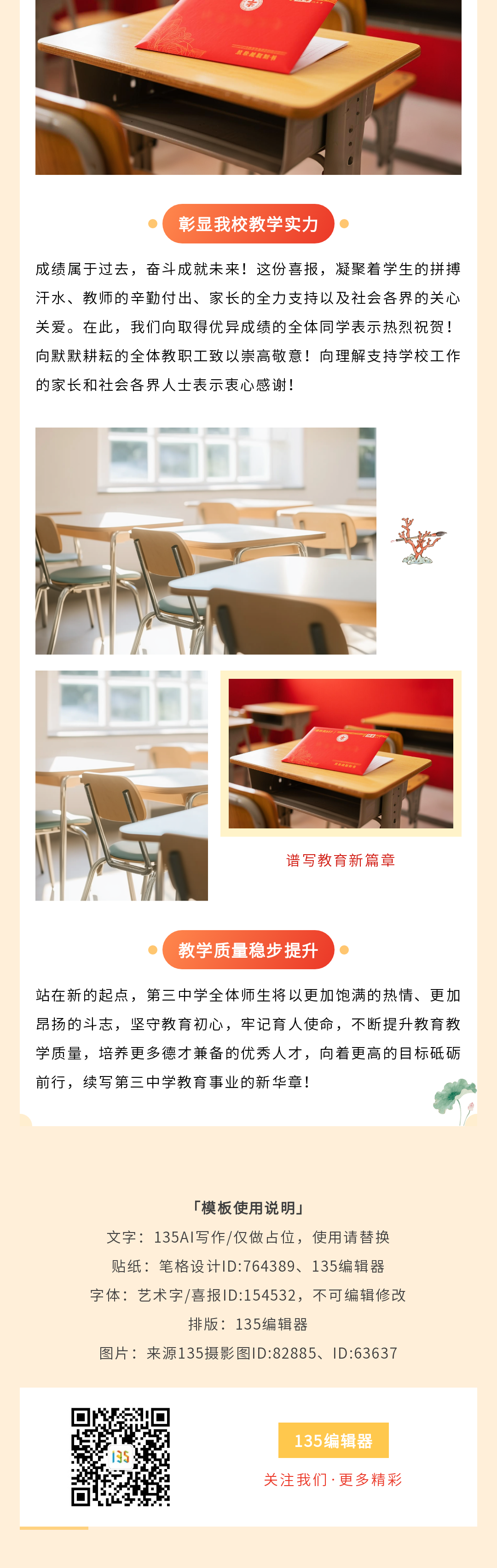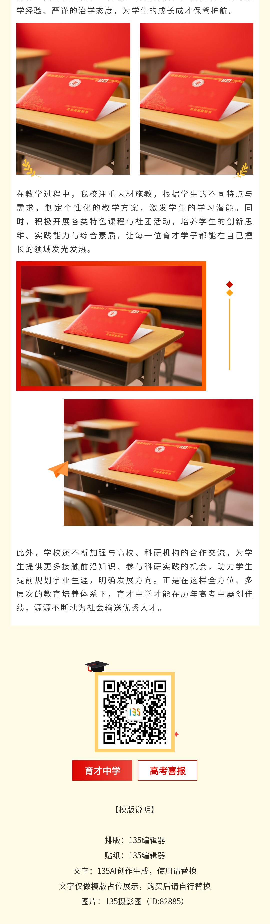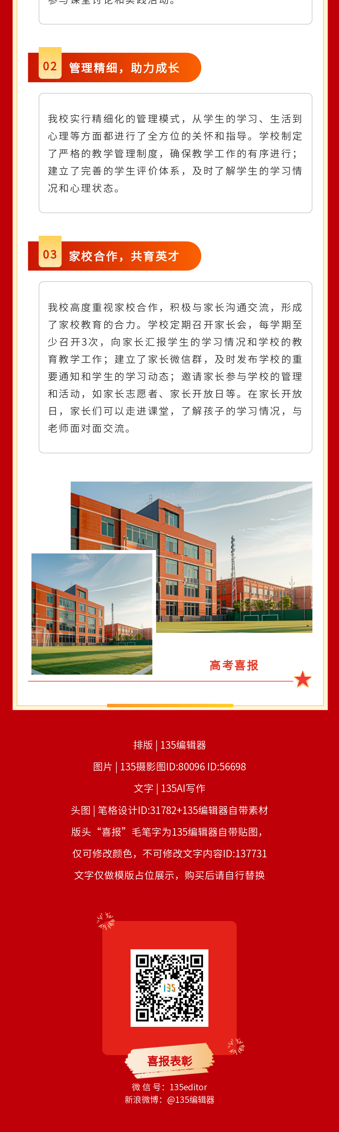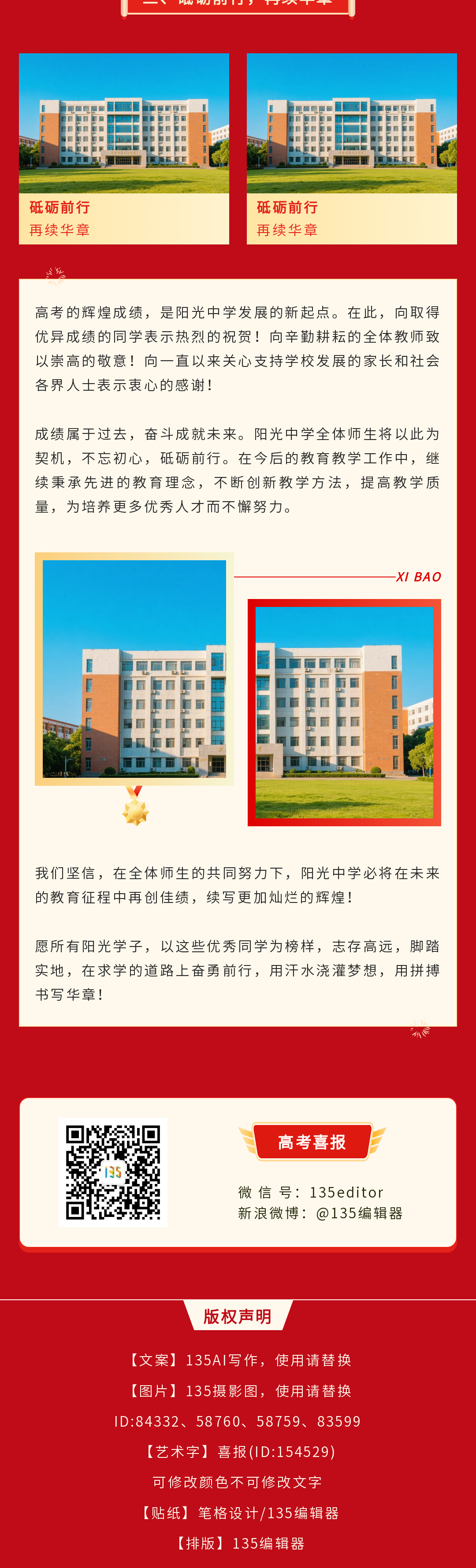 2025高考成績發(fā)布季,需要制作精美喜報(bào)?135編輯器提供多款【高考喜報(bào)公眾號(hào)推文模板】免費(fèi)下載!包含賀信、光榮榜、成績展示等多種樣式,輕松排版,助力學(xué)校/機(jī)構(gòu)快速發(fā)布喜訊。立即獲取