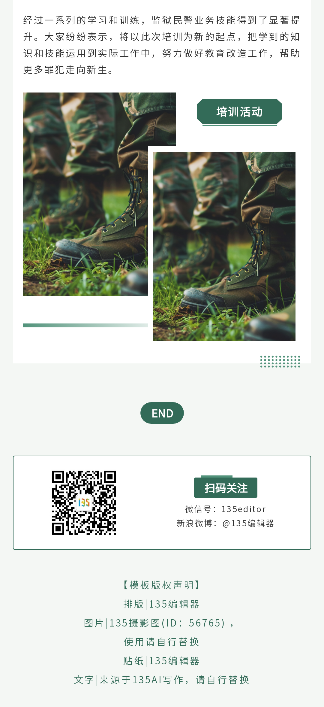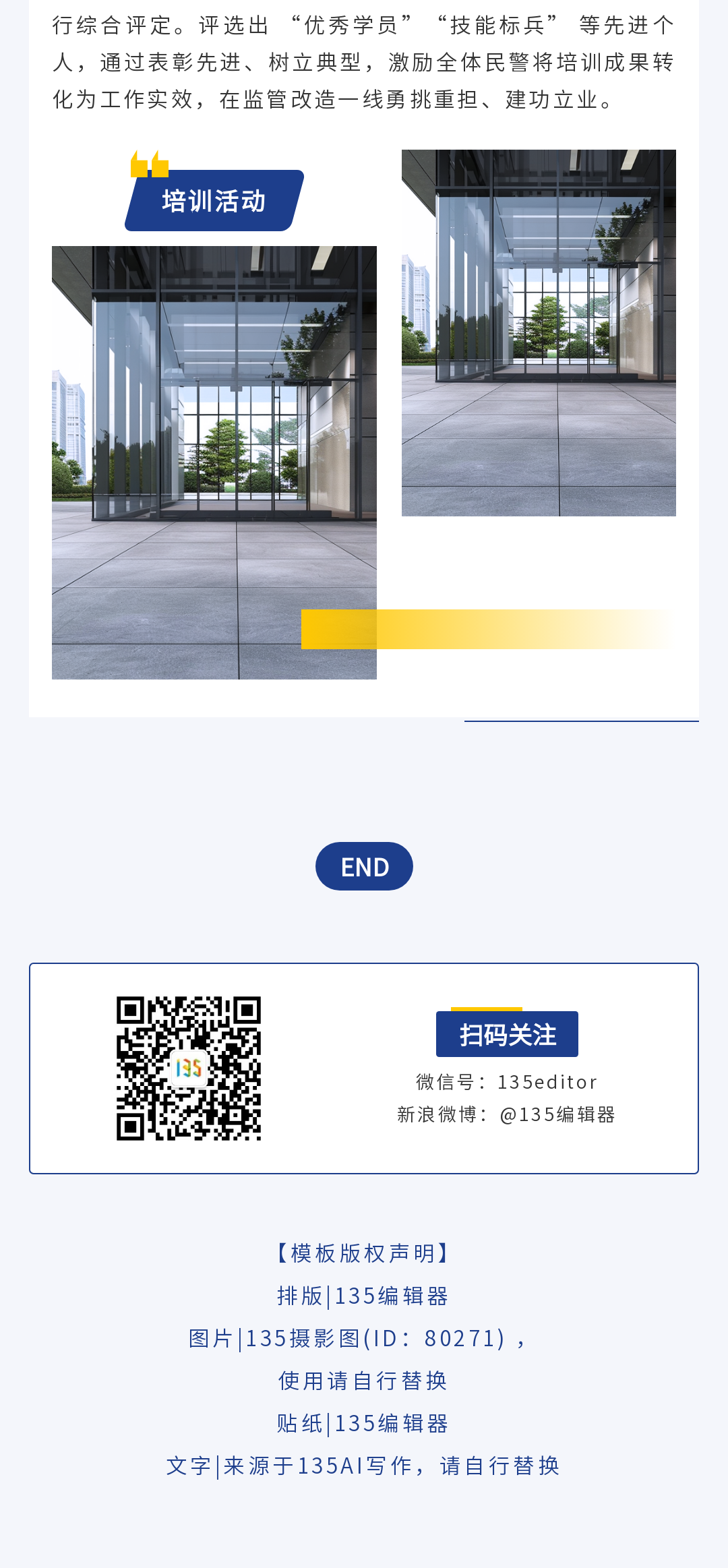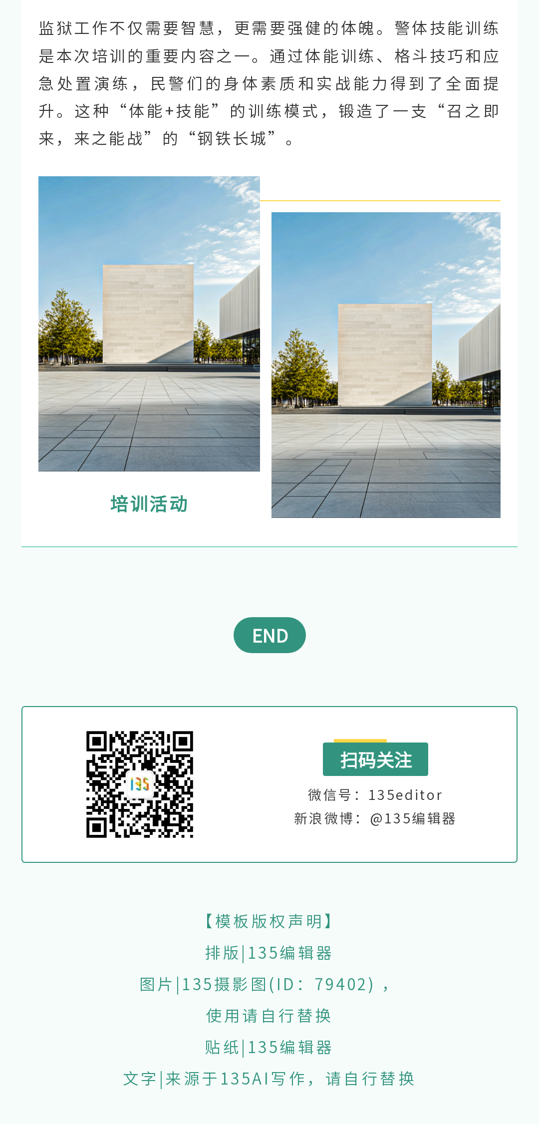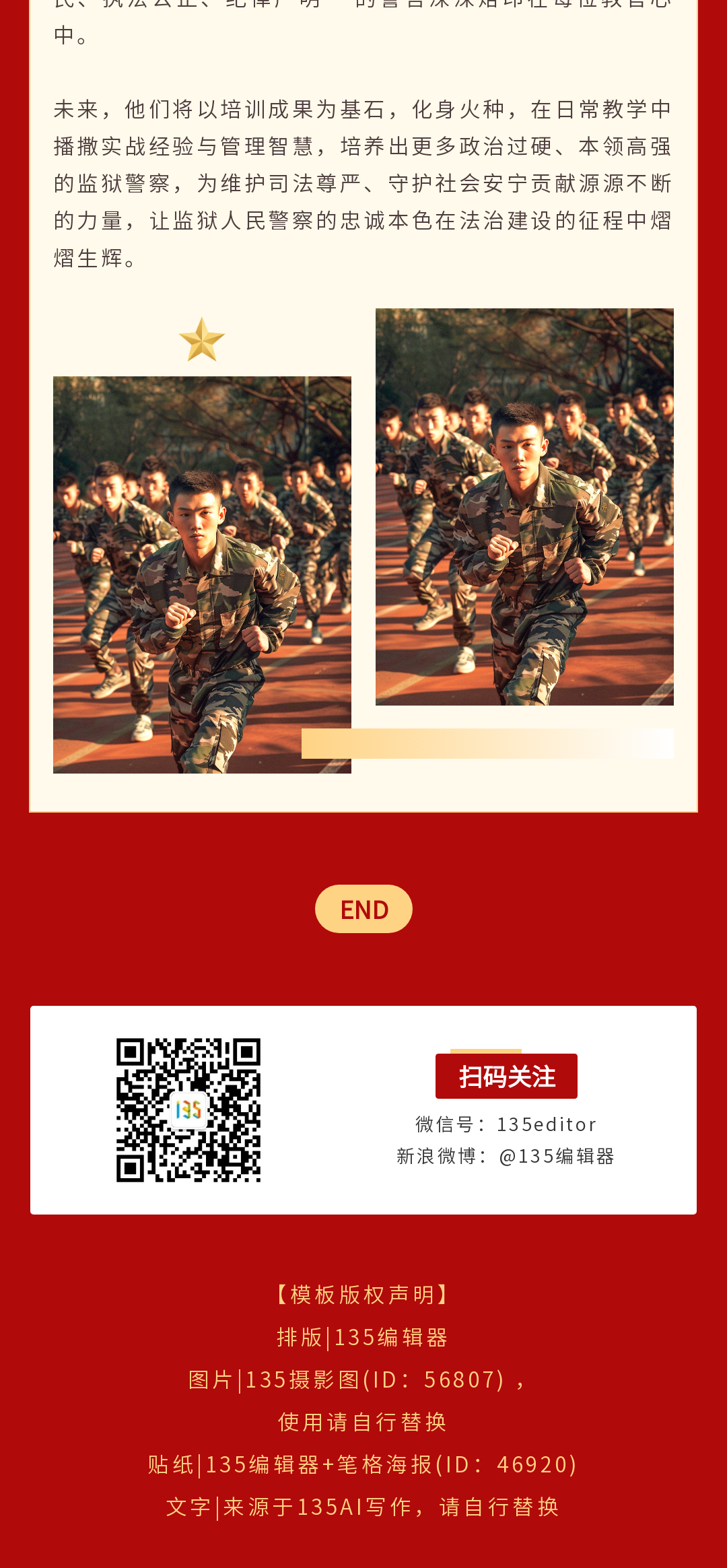 嗨嘍,寶子們,本期三兒為大家推薦的行業(yè)模板為監(jiān)獄系列,其中包括監(jiān)獄監(jiān)管改造業(yè)務(wù)培訓(xùn)班宣傳、監(jiān)獄親情幫教活動(dòng)宣傳、新警入列培訓(xùn)分享等主題的模板,基本涵蓋監(jiān)獄單位小編們的排版需求,一起來看看吧!