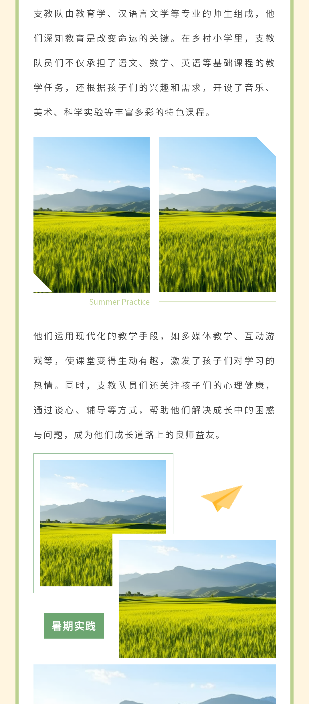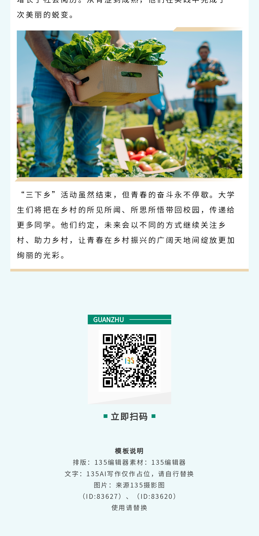 精選多款暑期社會實踐公眾號模板與排版樣式,助力高校、機(jī)構(gòu)輕松制作高質(zhì)量推文。適用于“三下鄉(xiāng)”、鄉(xiāng)村振興等主題,公眾號模板ID與使用技巧全收錄方便查找,快速提升公眾號視覺效果與傳播力。