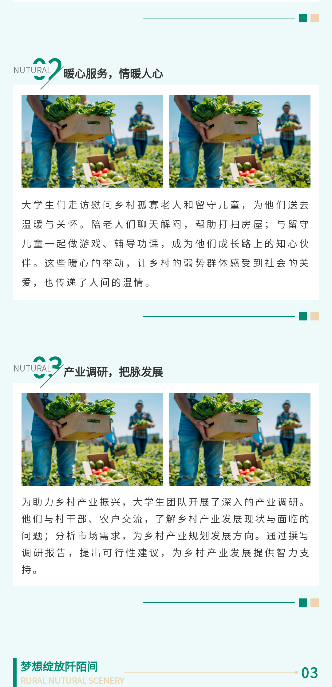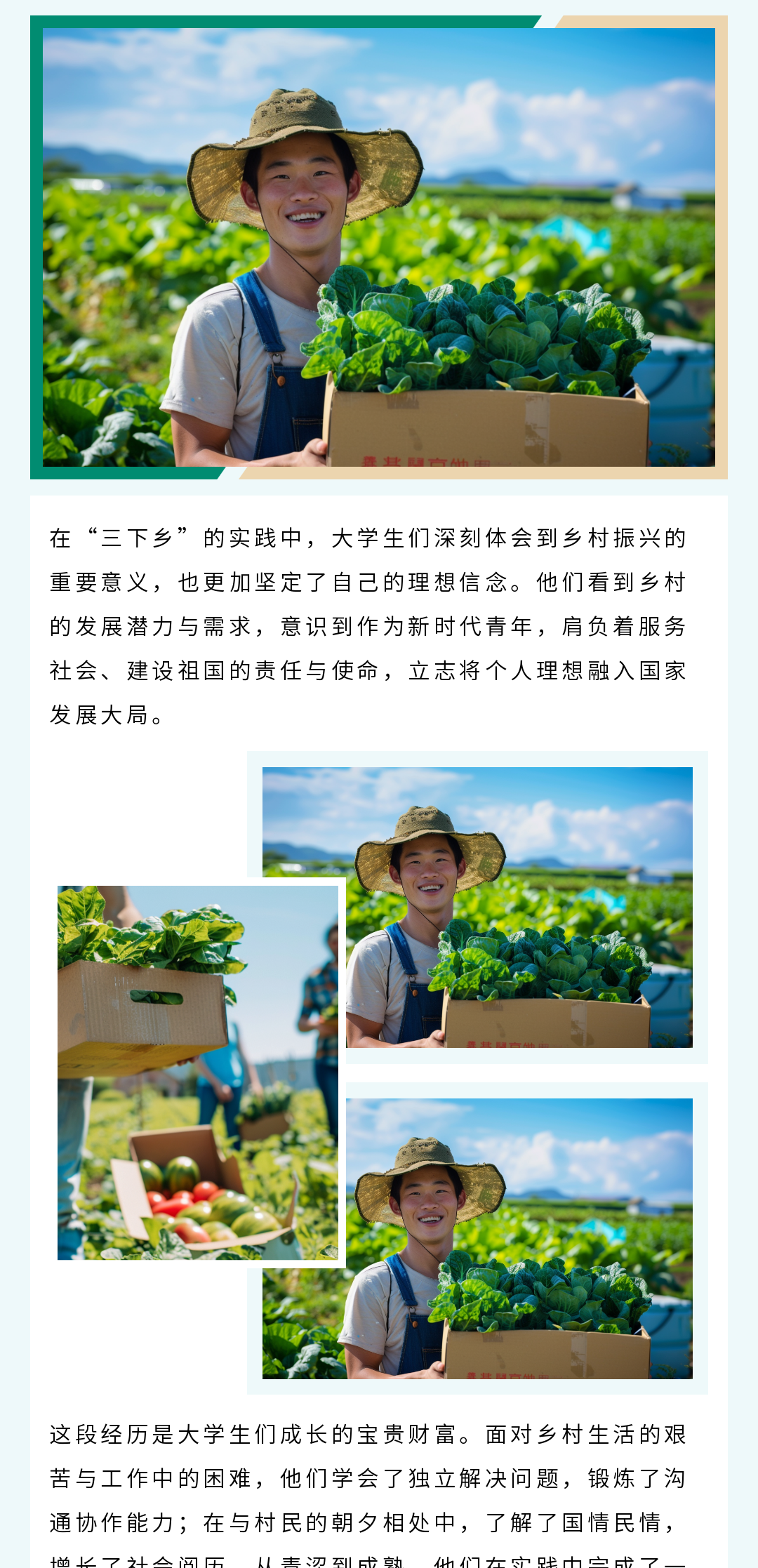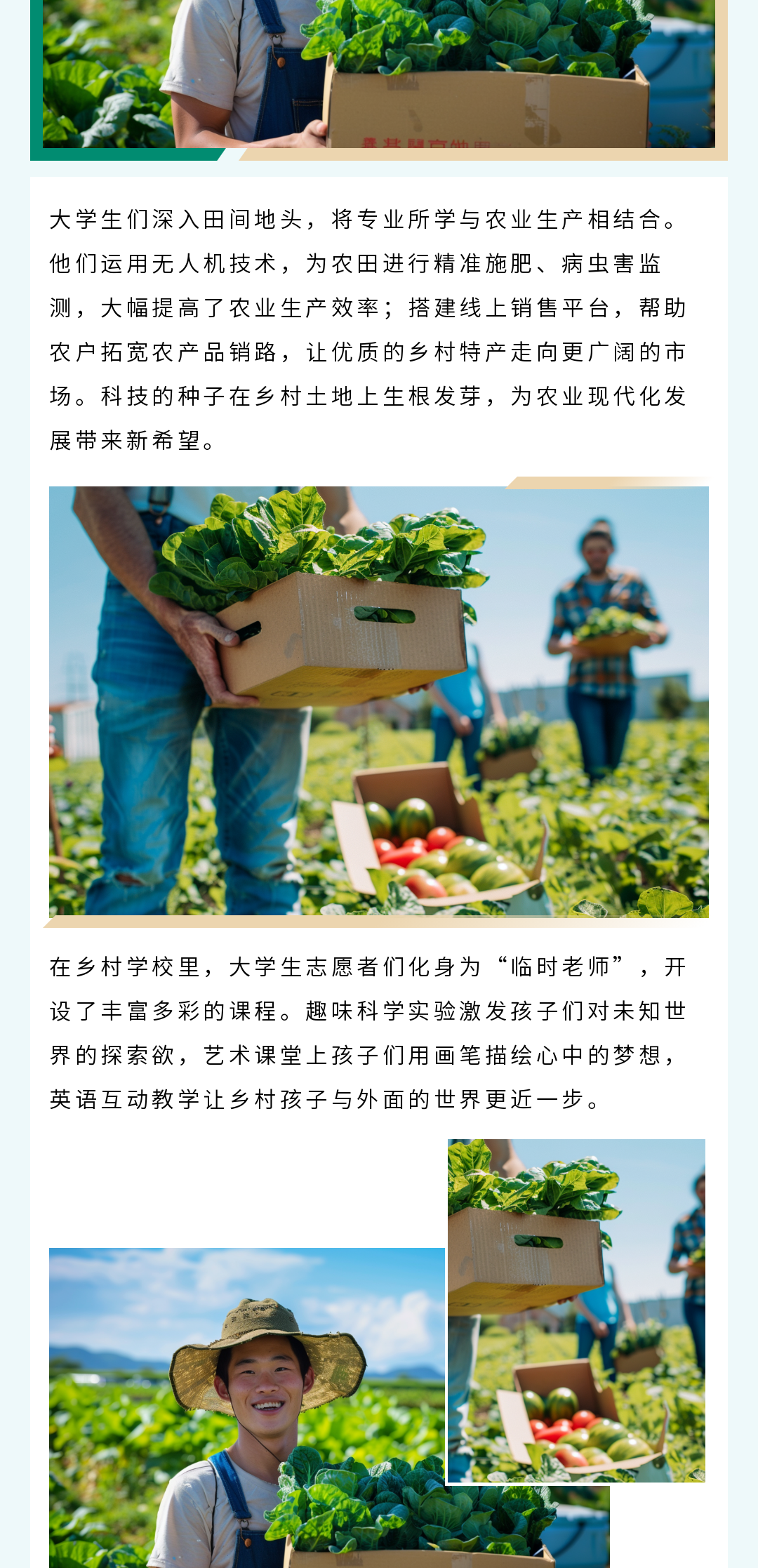 大學(xué)生們踴躍投身暑期社會實踐活動,他們以專業(yè)知識為依托,以服務(wù)鄉(xiāng)村為己任,在廣袤的鄉(xiāng)土大地上,將理論知識轉(zhuǎn)化為實踐動能,為鄉(xiāng)村發(fā)展注入青春力量。