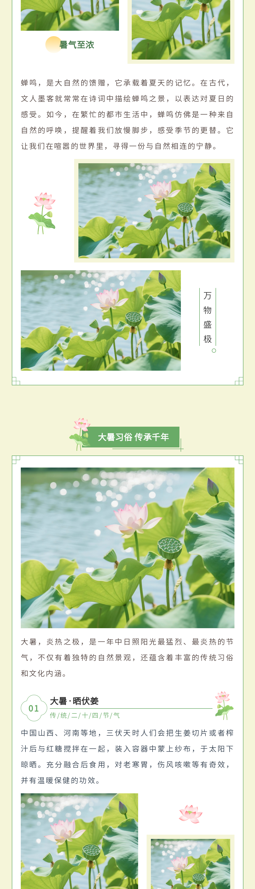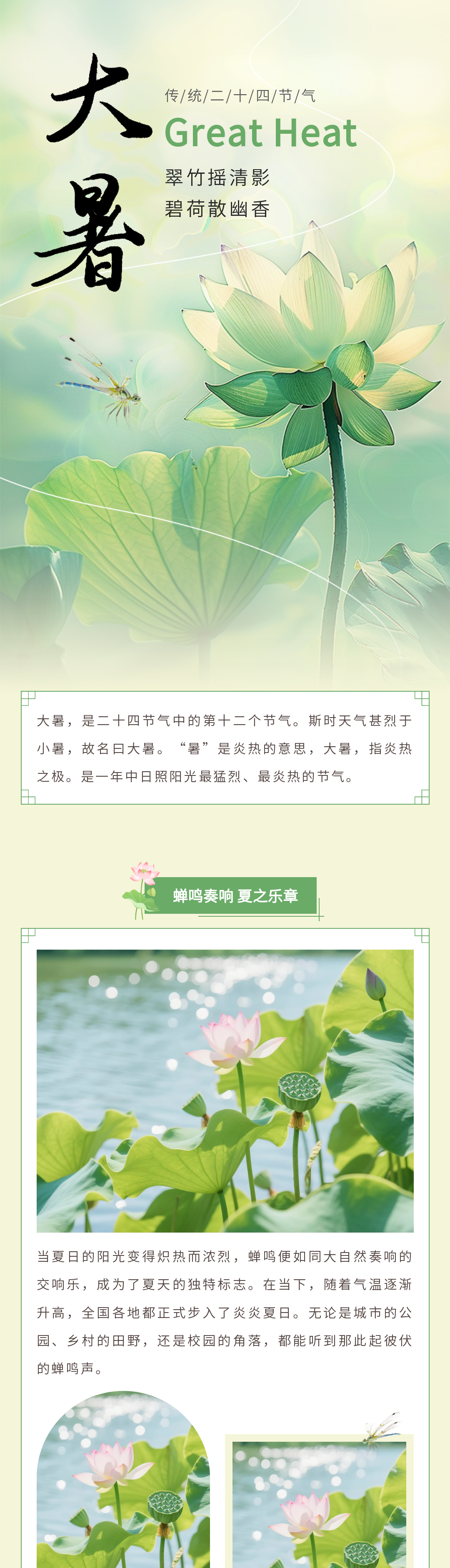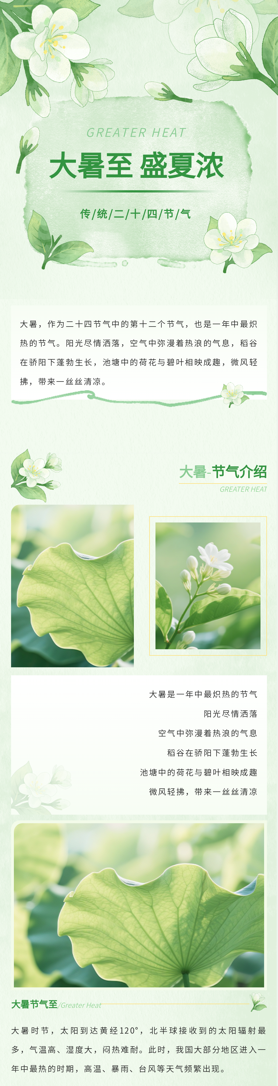 探索傳統(tǒng)二十四節(jié)氣大暑的魅力,獲取人民日?qǐng)?bào)筆下的大暑詩(shī)意描述。在135編輯器中利用精選大暑模板,輕松打造精美排版,展現(xiàn)夏季最后一個(gè)節(jié)氣的特色與美好。
