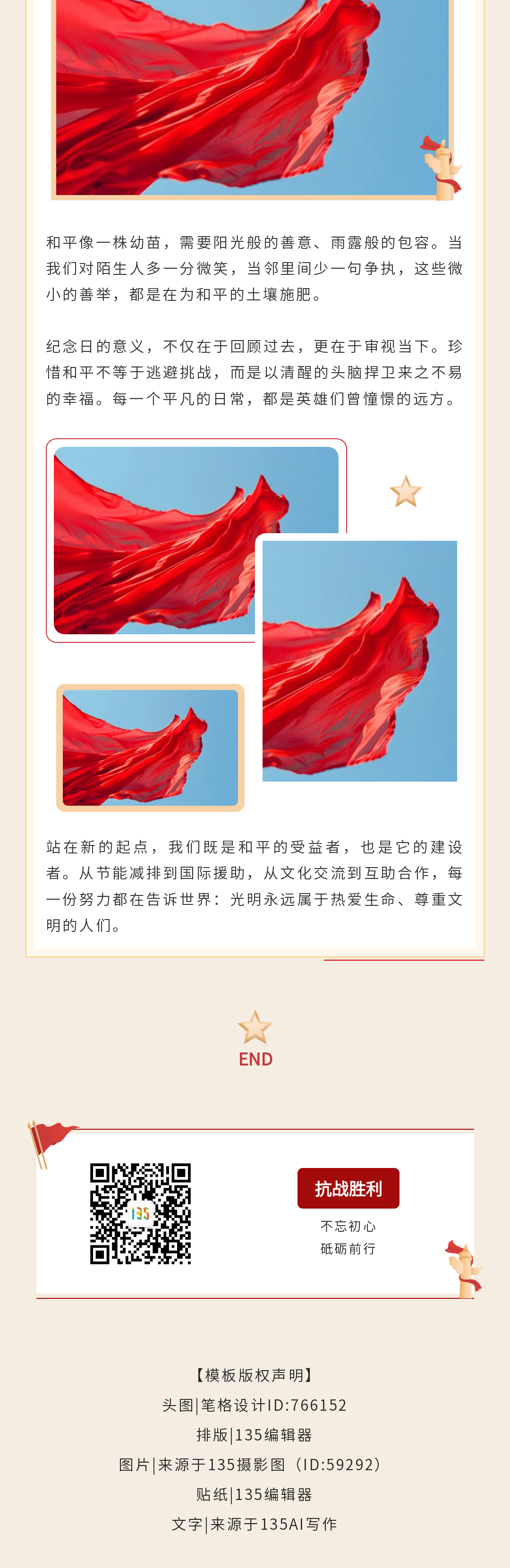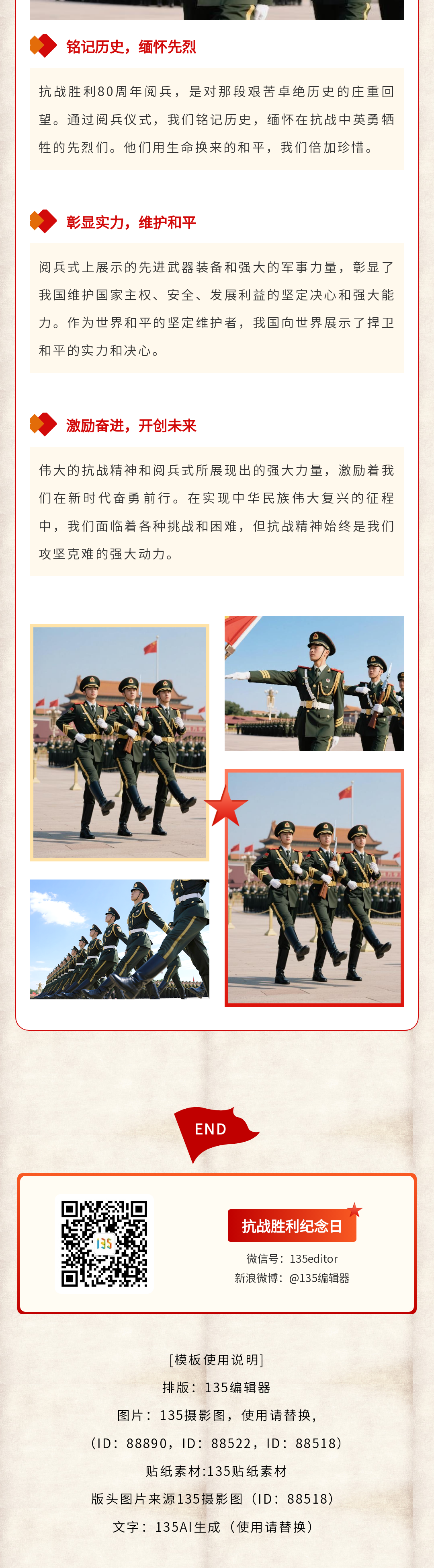2025年9月3日是抗戰(zhàn)勝利80周年紀(jì)念日,通過精選公眾號模板,銘記歷史,緬懷先烈,傳承不屈精神,開啟創(chuàng)作新篇章。