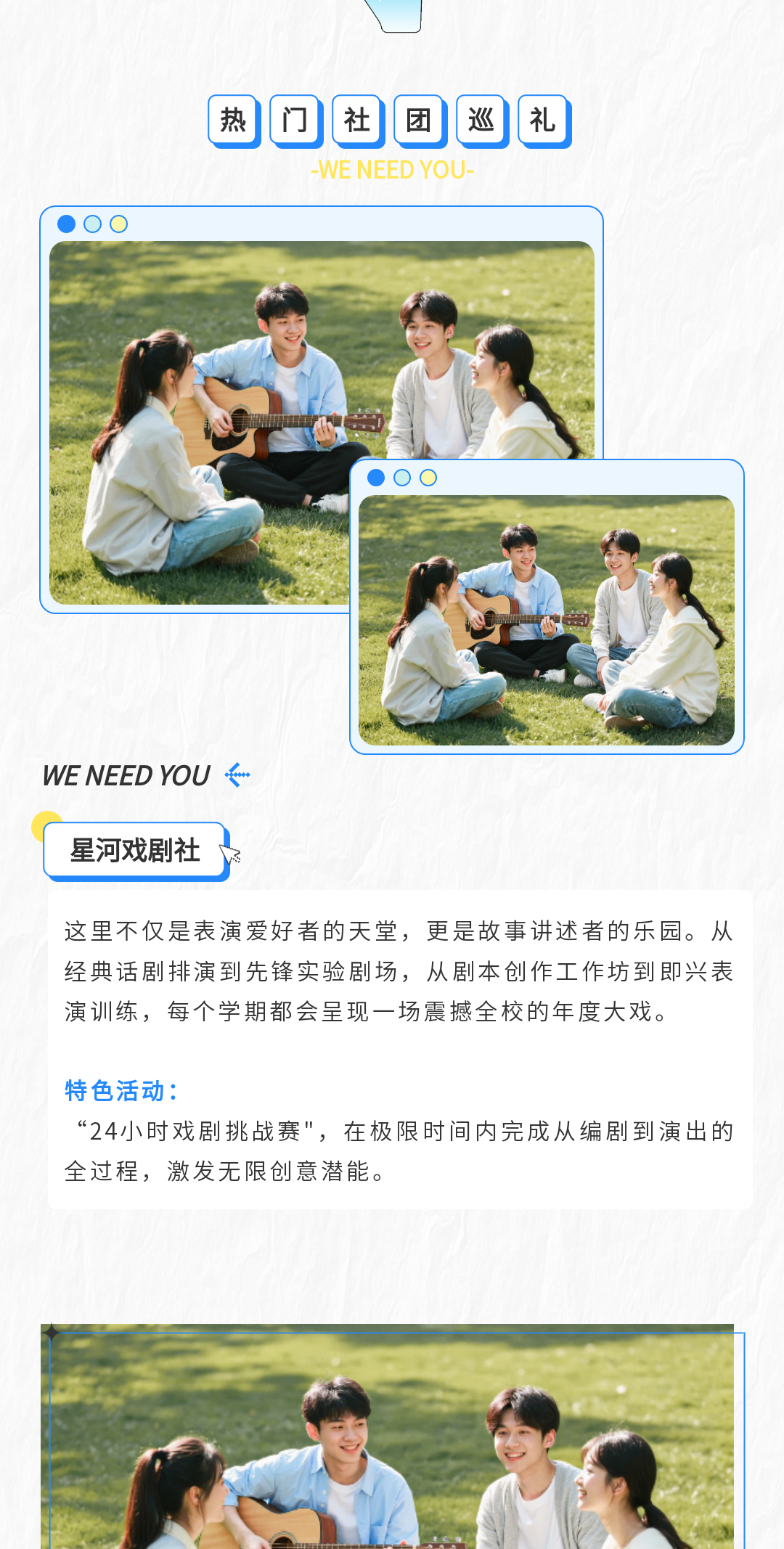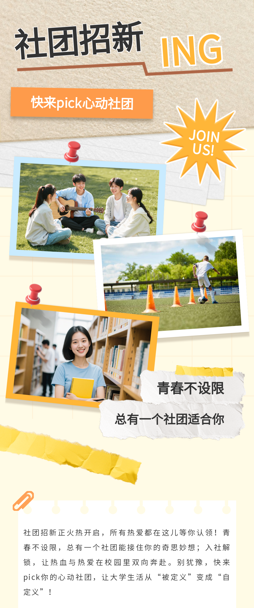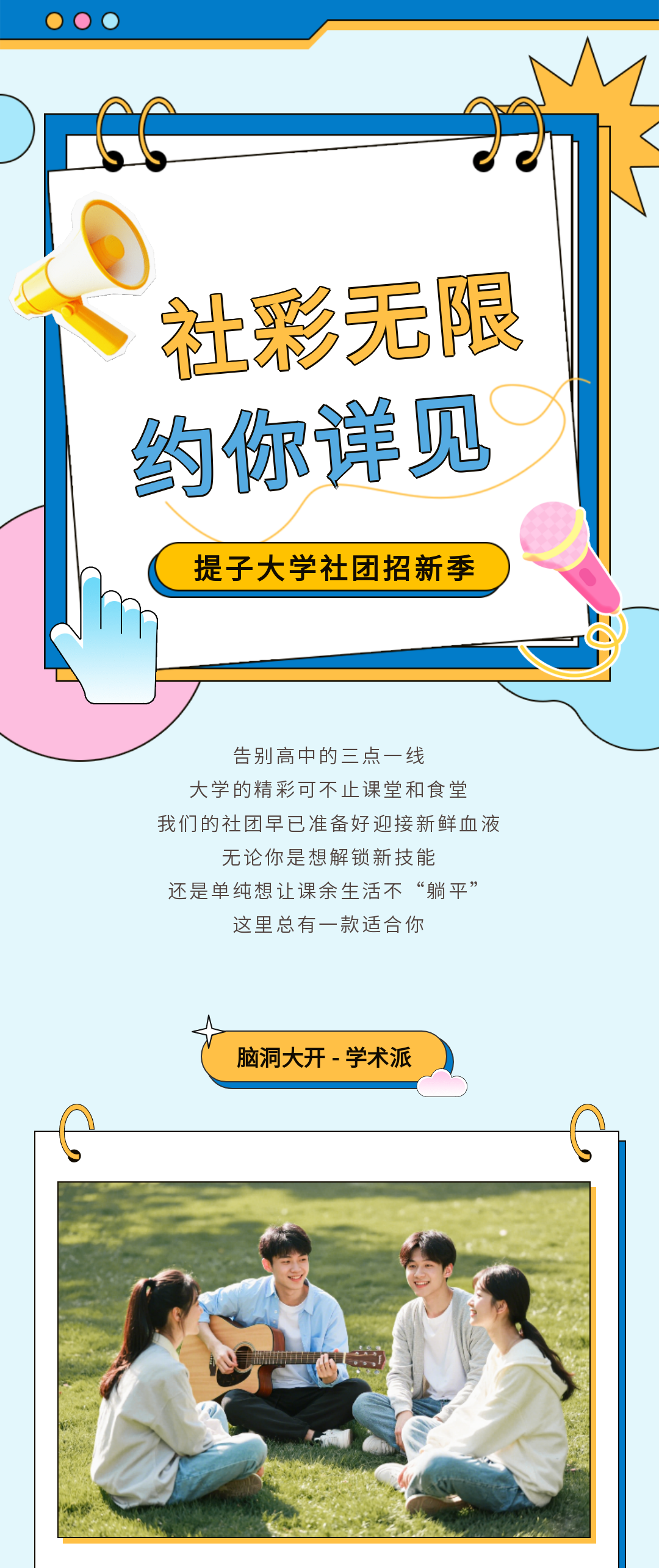 又到了社團(tuán)招新的黃金季!看著其他社團(tuán)憑借亮眼的宣傳內(nèi)容吸引大批新生圍觀,你是不是既羨慕又著急?別慌,三兒為大家整理一大波社團(tuán)招新可用的模板,趕緊來看看吧!