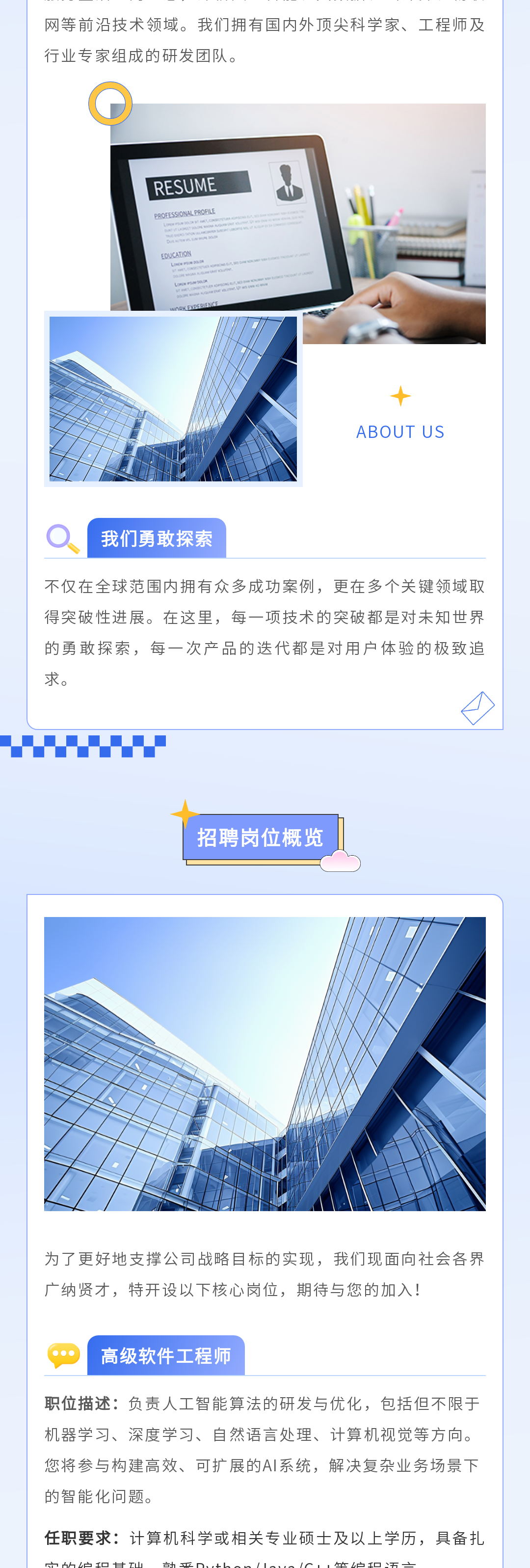 我們的招聘團(tuán)隊(duì)將對(duì)收到的簡歷進(jìn)行認(rèn)真篩選,對(duì)于符合崗位要求的候選人,我們將在一周內(nèi)與您取得聯(lián)系,通知您參加后續(xù)環(huán)節(jié)。請(qǐng)您保持電話暢通,并及時(shí)關(guān)注郵件和短信通知。