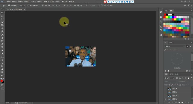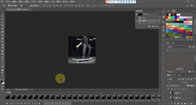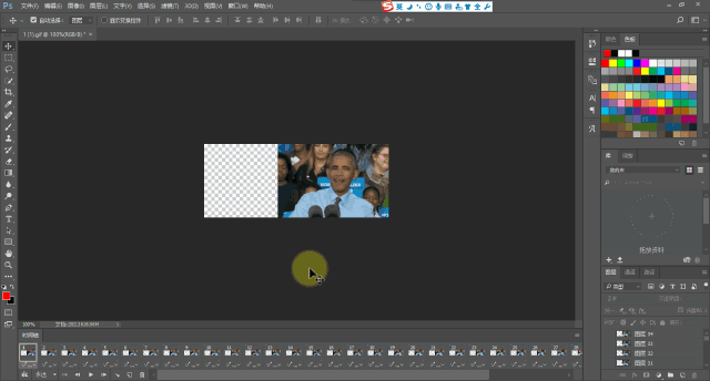 依然先在GIF的最后一幀or圖層最頂層點(diǎn)擊一下,確定GIF置入后的位置。